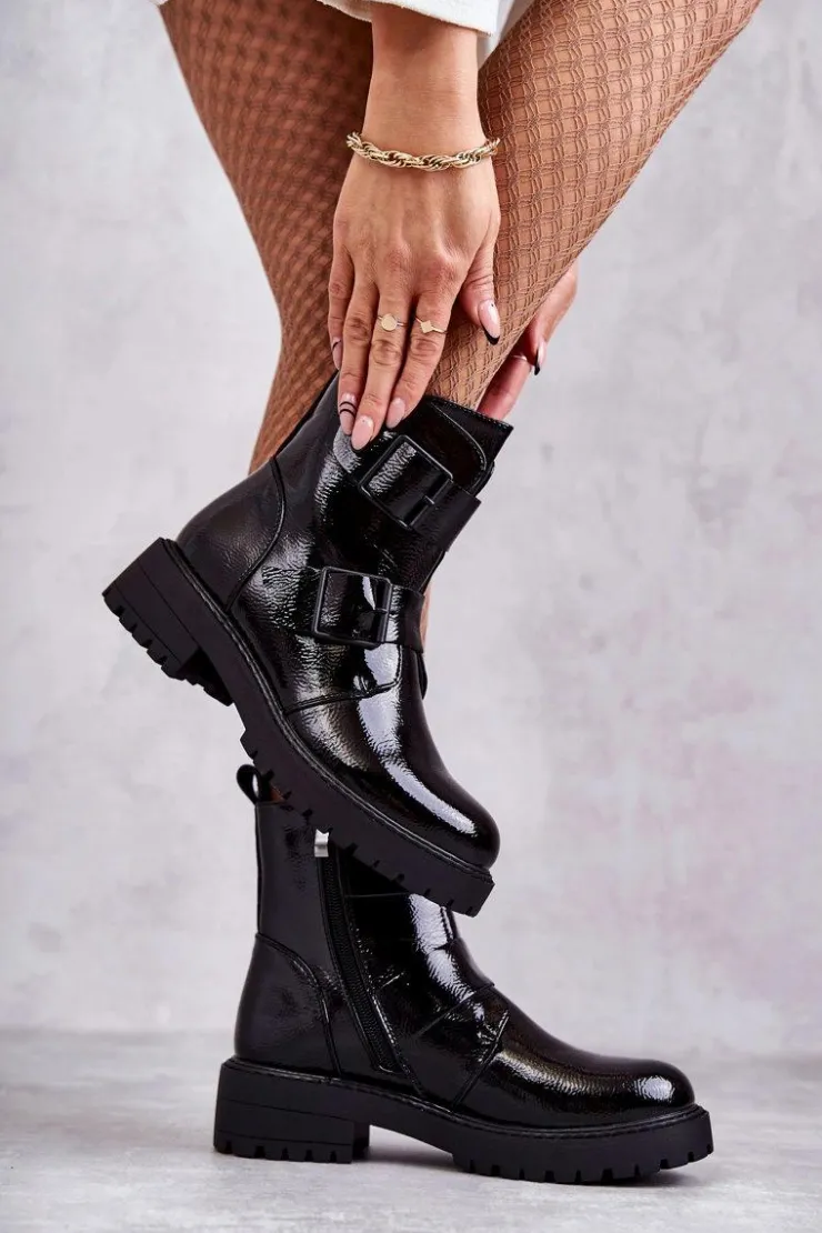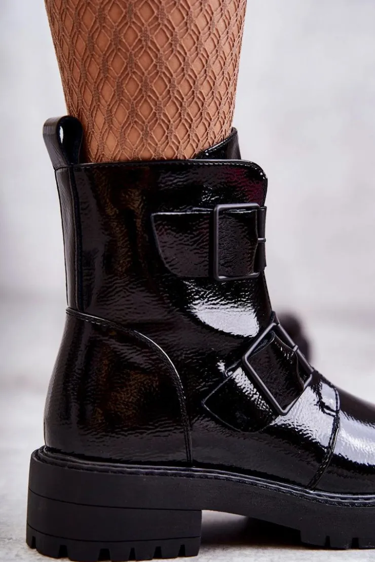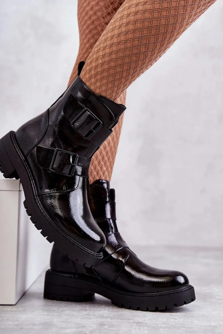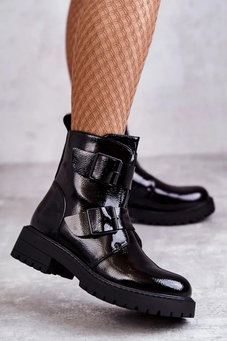 Klasyczne botki damskie zostały wykonane z eko skóry. Posiadają ozdobne paski z klamrami na boku cholewki. Model zapinany na suwak. Osadzone na płaskim obcasie oraz platformie wraz ze żłobieniem. Botki są ocieplane w środku kocem obuwniczym. Posiadają usztywniany zapiętek. Modne obuwie, które świetnie sprawdzi się do pracy, szkoły. Przy wyborze rozmiaru prosimy sugerować się tabelą rozmiarów.
