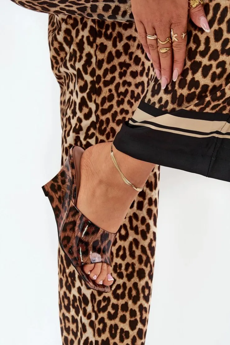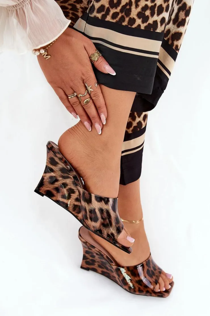 Stylowe klapki damskie wykonane z eko skóry. Osadzone na zwężanym koturnie. Idealne na ciepłe dni, te klapki doskonale komponują się zarówno z sukienkami, jak i spódnicami, dodając każdej stylizacji modnego wyglądu. Przy wyborze rozmiaru prosimy sugerować się tabelą rozmiarów.