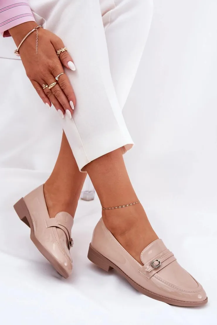 Mokasyny damskie z eko skóry, osadzone na płaskim obcasie, które łączą wygodę z subtelnym stylem. Z przodu znajdują się paseczek oraz ozdobna sprzączka, które nadają wyjątkowego charakteru. Dzięki miękkiej wkładce te mokasyny zapewniają komfort przez cały dzień. Idealne na co dzień, doskonale pasują do eleganckich oraz casualowych stylizacji. Przy wyborze rozmiaru prosimy sugerować się tabelą rozmiarów.