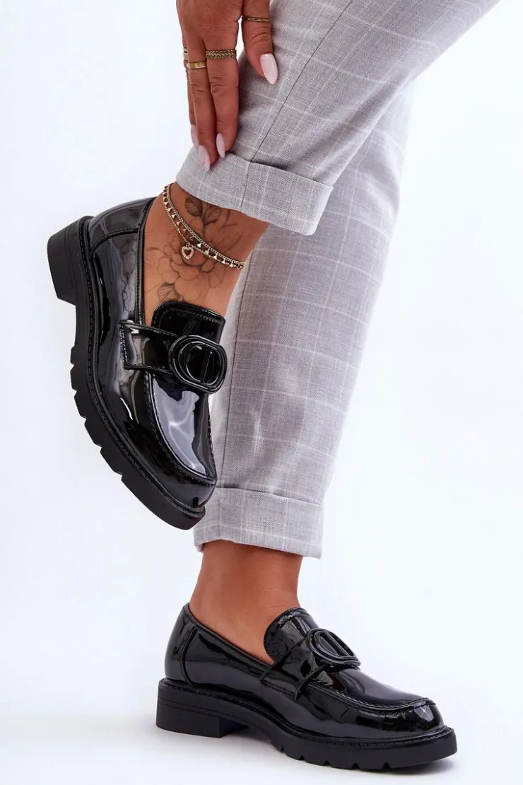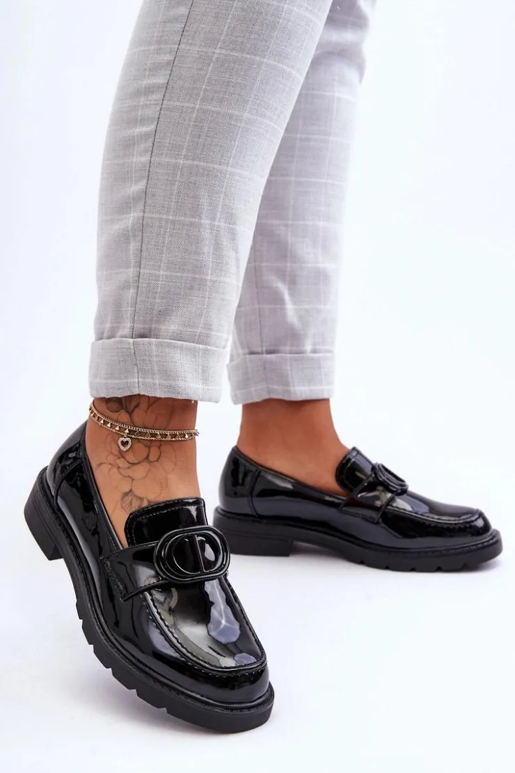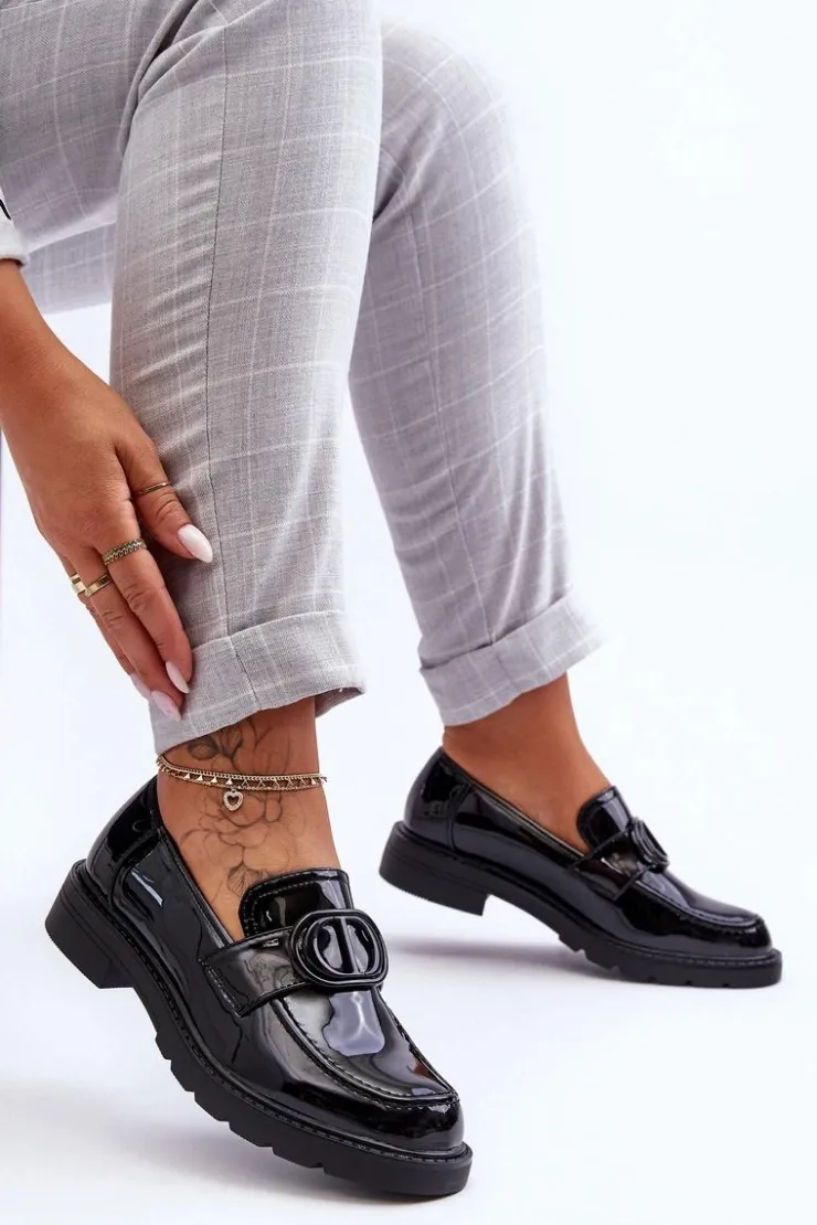 Damskie Boto Lakierowane Mokasyny Na Platformie Czarne Jarren