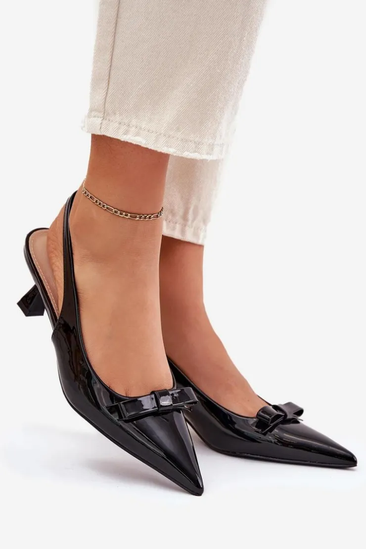 Sandały damskie z eko skóry na niskiej szpilce to elegancka propozycja na specjalne okazje. Szpiczaste noski dodają im smukłości, a subtelna kokardka z przodu nadaje im kobiecego uroku. Stylowy i elegancki wygląd sprawia, że te sandały będą doskonałym wyborem na wieczorne wyjścia, wesela czy inne uroczystości. Przy wyborze rozmiaru prosimy sugerować się tabelą rozmiarów.