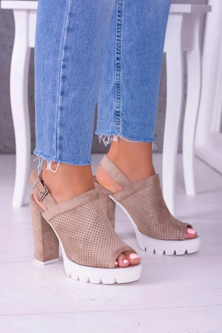 Damskie Boto Lu Boo Beżowe Zamszowe Sandały na Słupku Emare