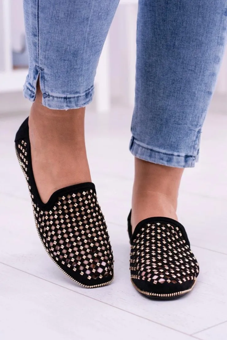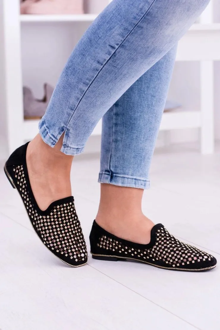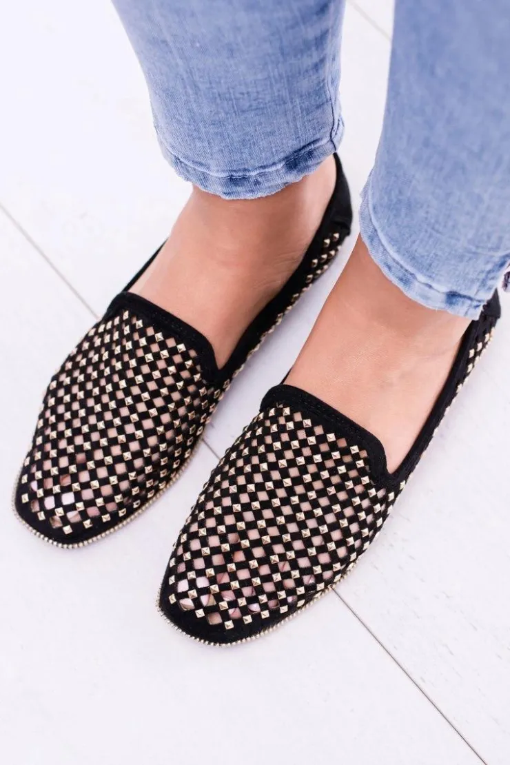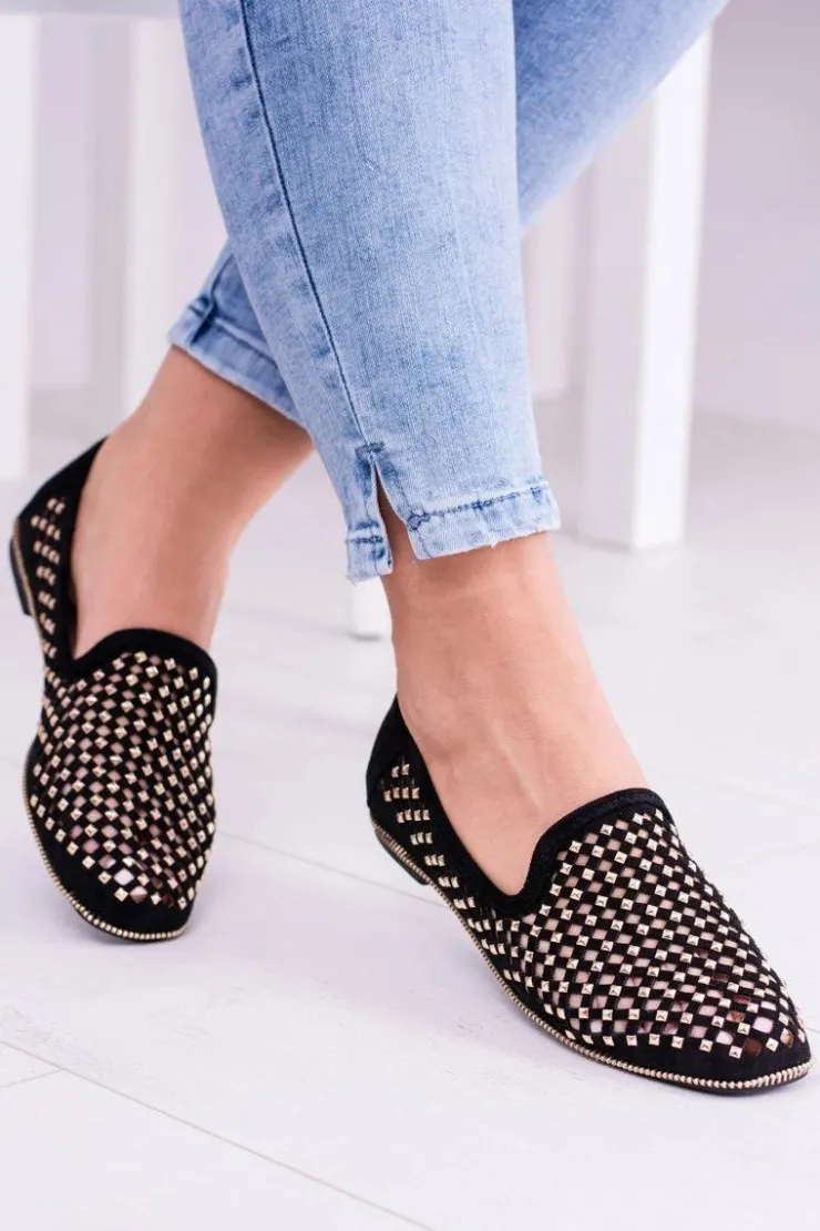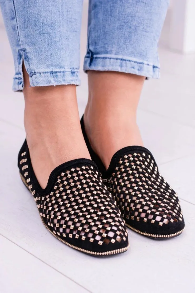 Damskie Boto Lu Boo Czarne Ażurowe Baleriny Lordsy Ćwieki Carmar