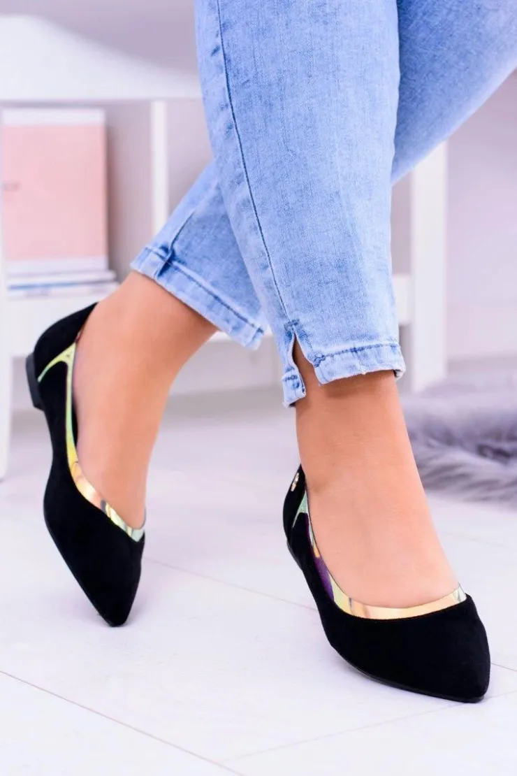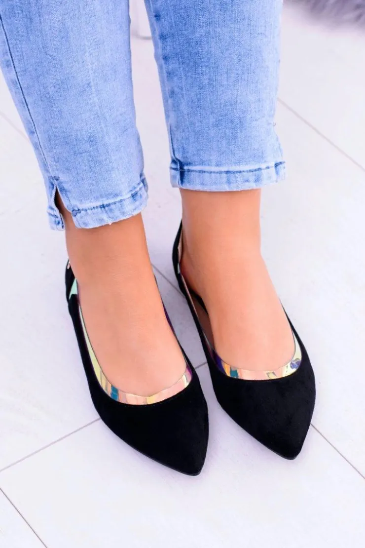 Damskie Boto Lu Boo Czarne Transparentne Holograficzne Balerinki w Szpic Lison