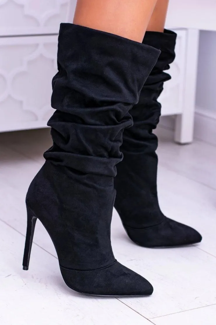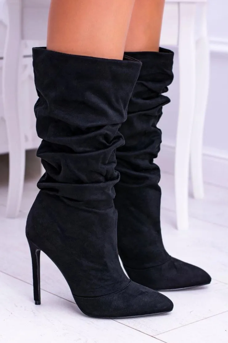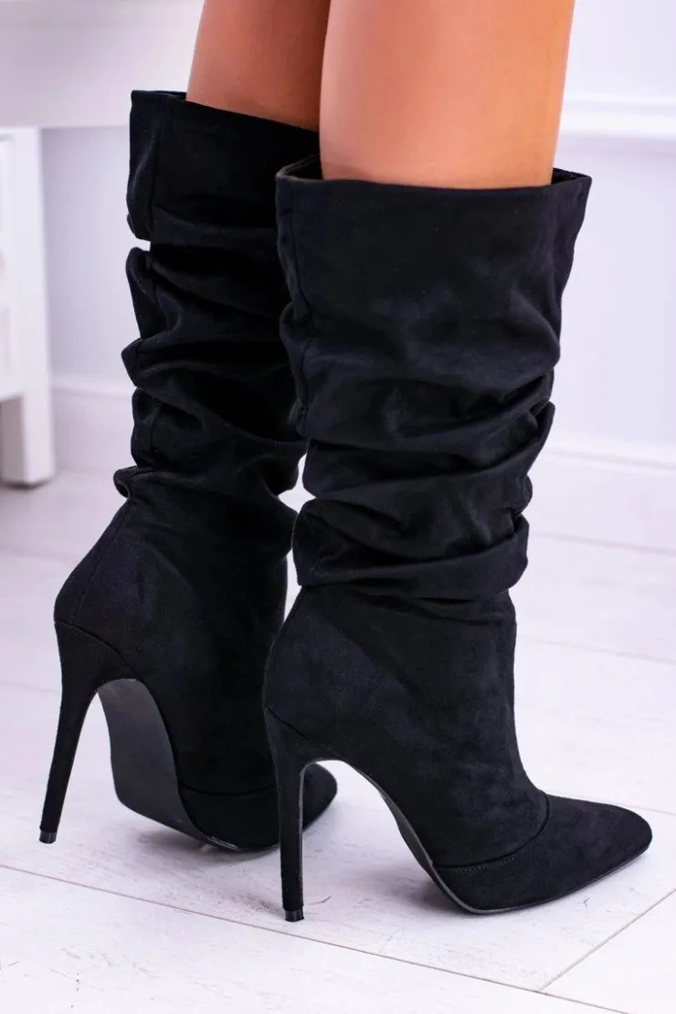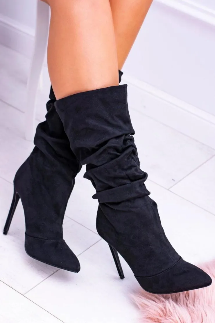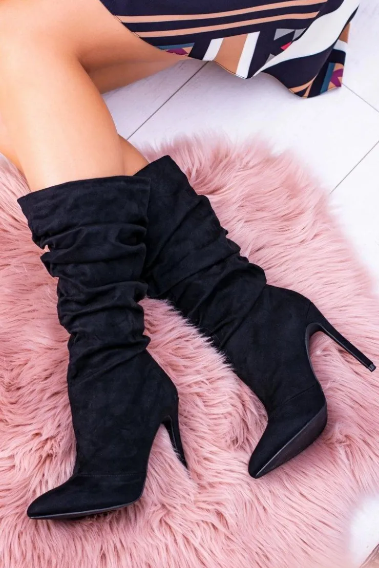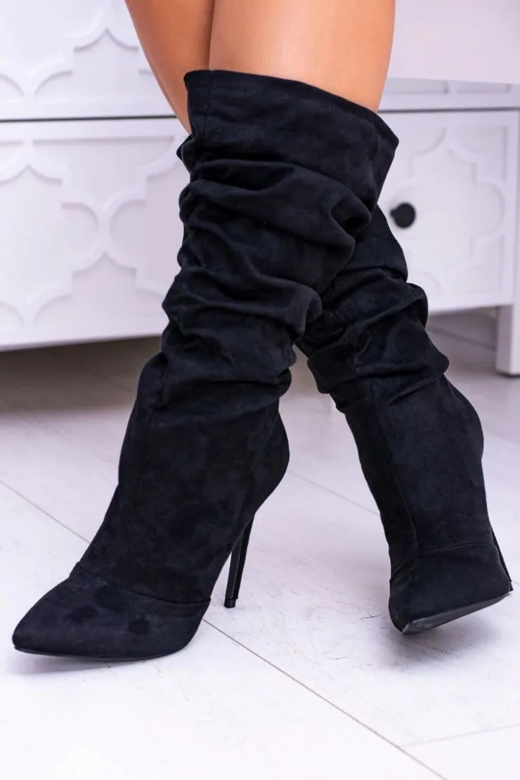 Damskie Boto Lu Boo Czarne Wysokie Zamszowe Botki na Szpilce Bellisario