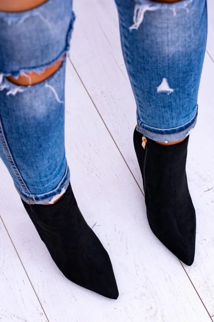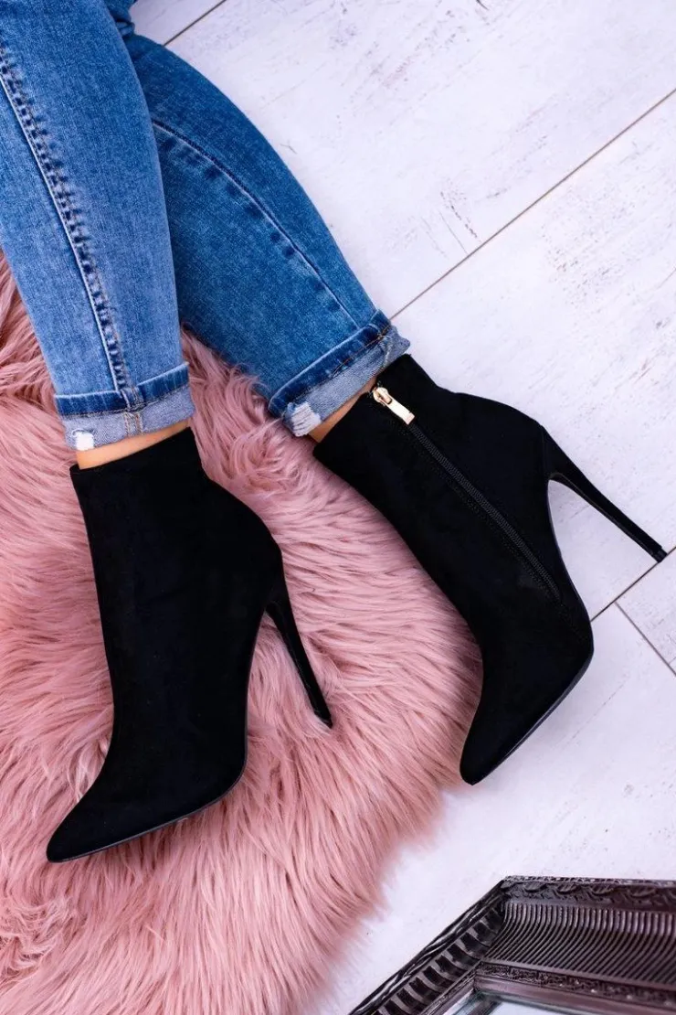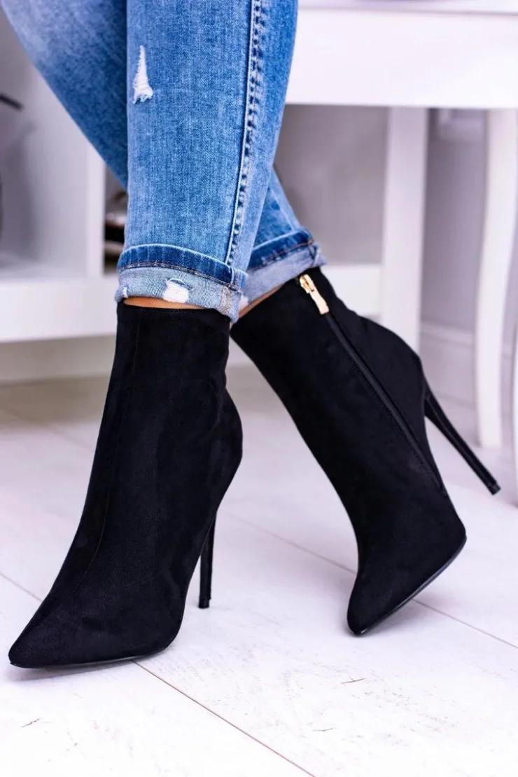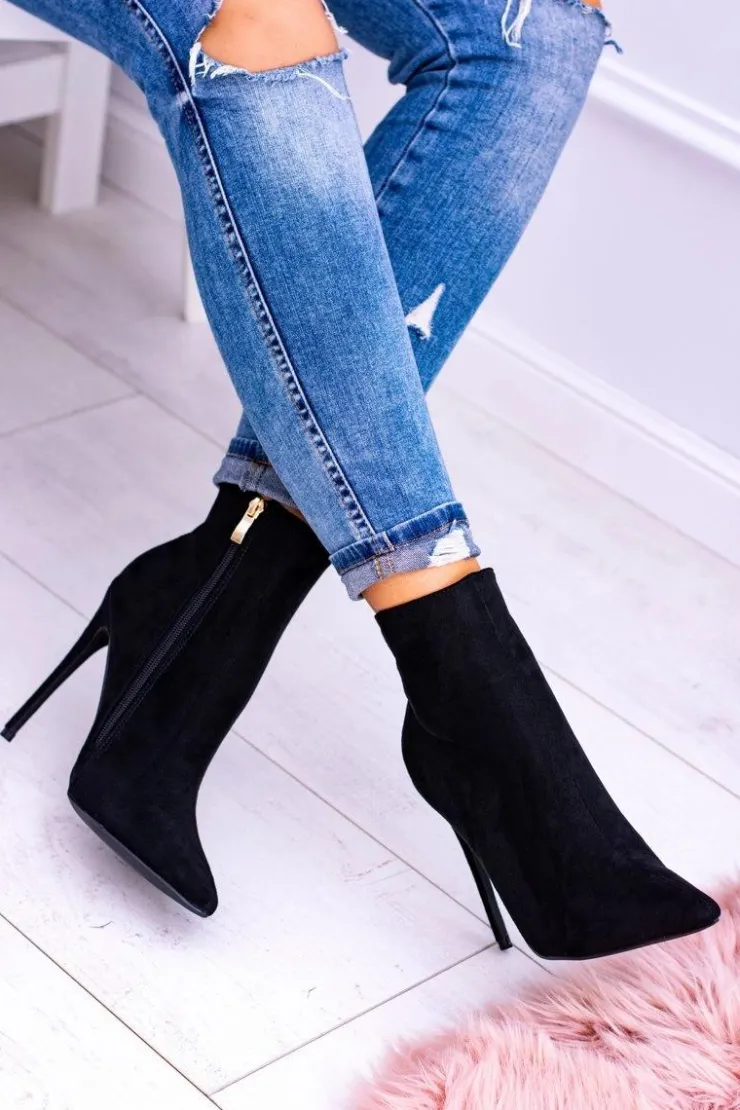 Damskie Boto Lu Boo Czarne Zamszowe Botki na Szpilce Veneci
