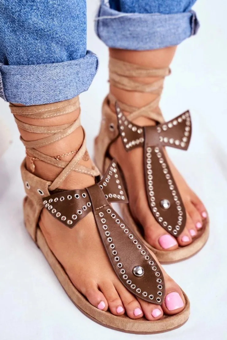 Damskie Boto Lu Boo Damskie Brązowe Wiązane Sandały Japonki Mara
