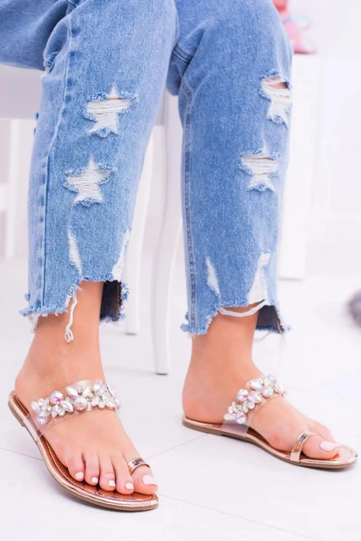 Jedne z najmodniejszych klapek jakie mogłaś sobie wymarzyć, dostępne są w naszej kolekcji! Model Tanut od Lu Boo wyróżnia się wysoką jakością wykonania oraz niecodziennym stylem. Przeźroczysty pasek zdobiony mieniącymi się cekinami sprawi, że będziesz mogła je nosić nie tylko do letnich stylizacji ale także podczas bardziej szykownych wyjść. Idealnie leżą na nodze dzięki paskowi na dużym palcu.