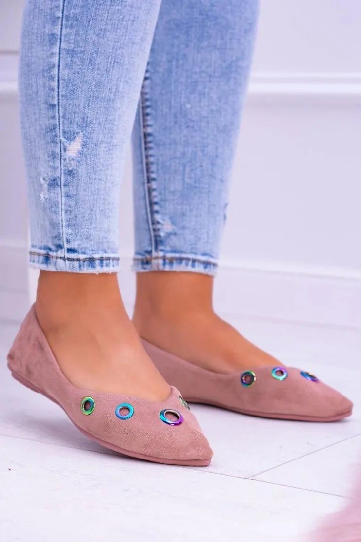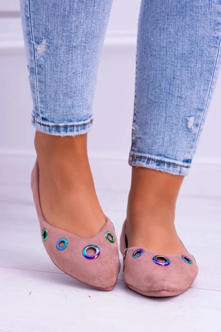 Damskie Boto Lu Boo Różowe Baleriny W Szpic Benzynowe Oczka Octavia