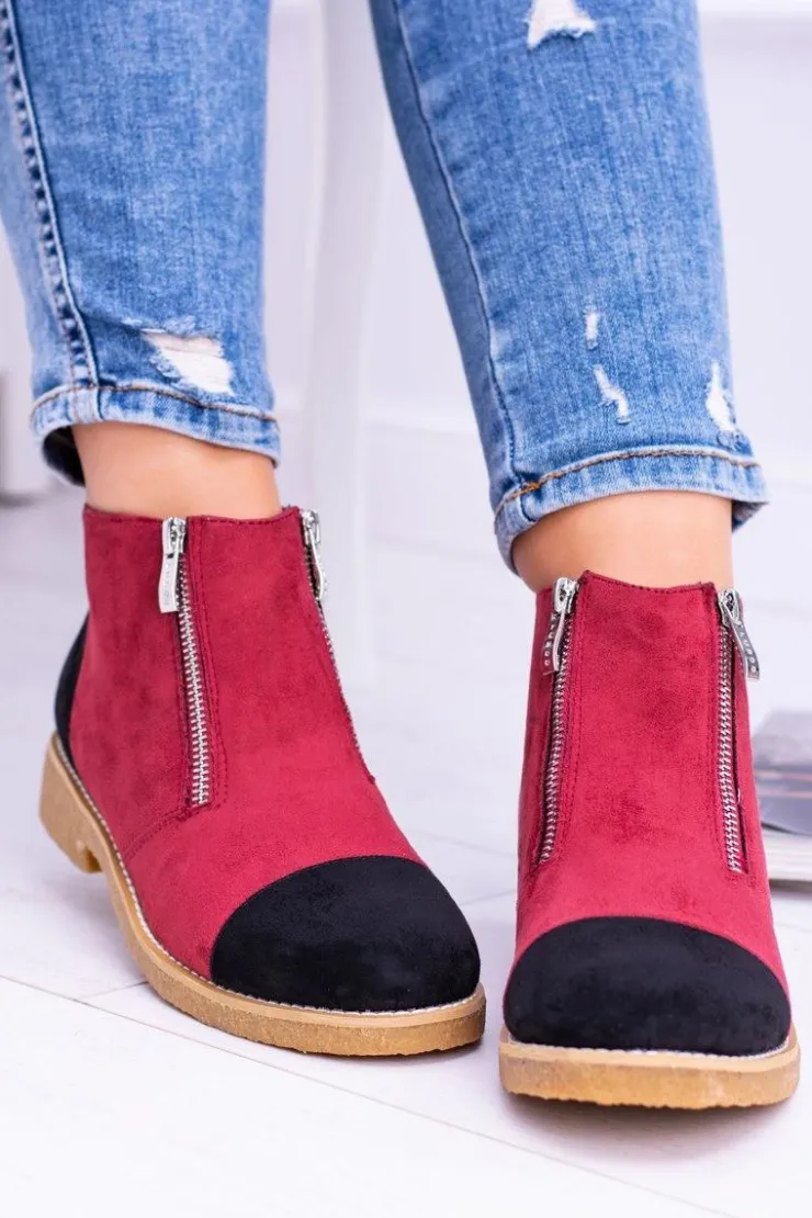 Damskie Boto Lu Boo Zamszowe Bordowe Botki Z Suwakami Inez
