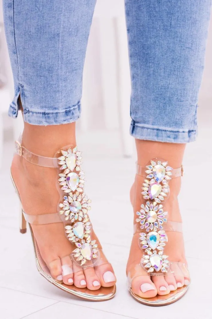 Damskie Boto Lu Boo Złote Sandały Na Szpilce Cyrkonie Serenada