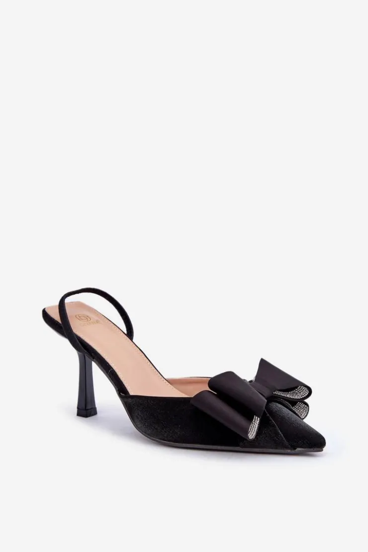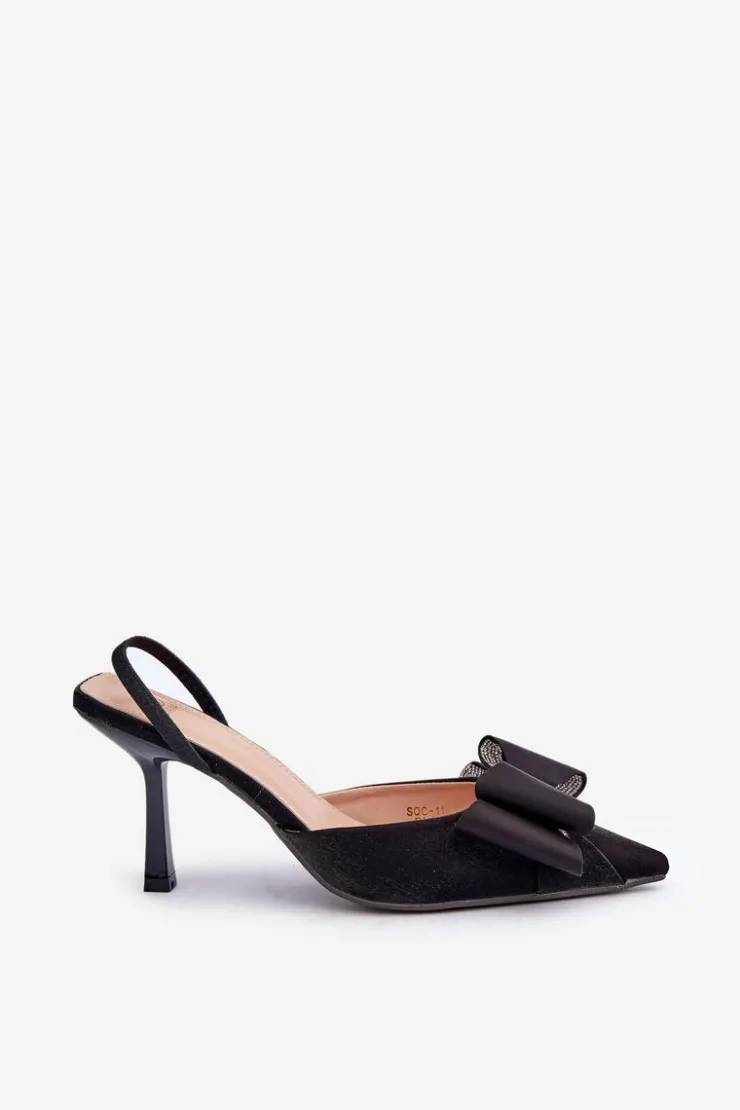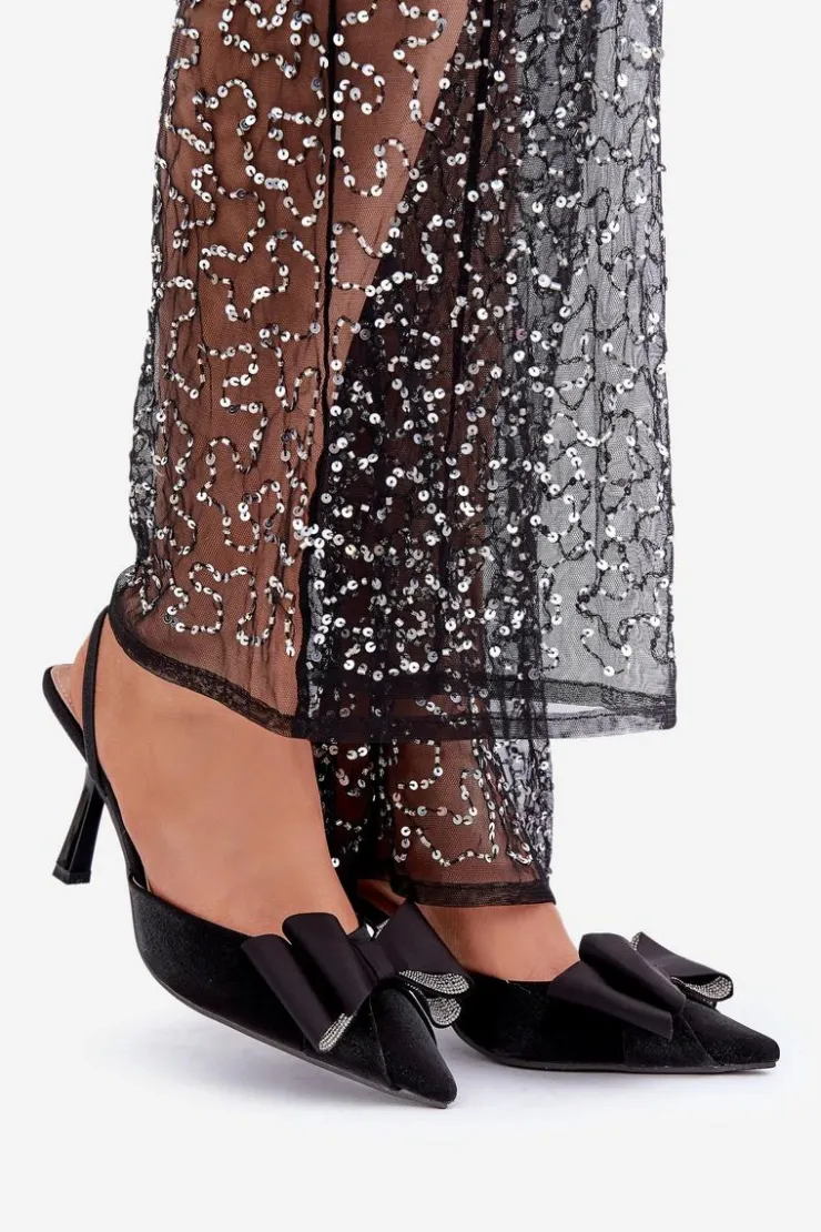 Eleganckie damskie szpilki wykonane z materiału tekstylnego. Przód butów ozdobiony efektowną kokardą, która przyciąga wzrok i nadaje im wyjątkowego charakteru. Szpiczaste noski optycznie wysmuklają nogi, a obcas w formie szpilki podkreśli sylwetkę. Idealny wybór na wieczorowe wyjścia. Te szpilki to połączenie stylu, wygody i ponadczasowej elegancji! Przy wyborze rozmiaru prosimy sugerować się tabelą rozmiarów.