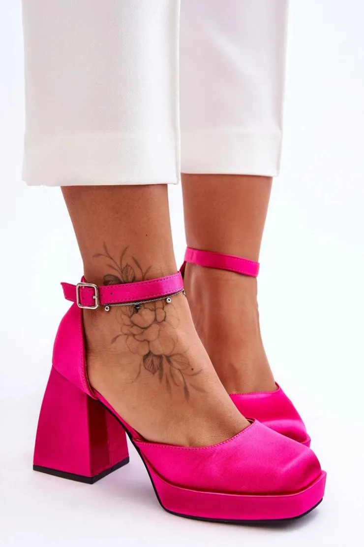 Te modne czółenka zostały osadzone na platformie oraz obcasie w postaci stabilnego, masywnego klocka. Zostały wykonane z materiału tekstylnego. Miękka wkładka z eko skóry zapewni komfortowe użytkowanie. Charakterystyczny, kwadratowy nosek wyróżnia ten model. Zapinane na regulowany pasek ze sprzączką. Przy wyborze rozmiaru prosimy sugerować się tabelą rozmiarów.