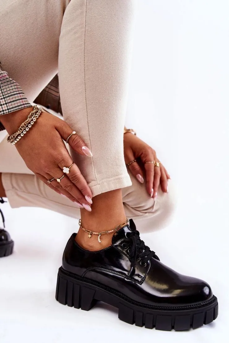 Półbuty zostały wykonane z wysokiej jakości eko skóry. Miękka wkładka ze skóry naturalnej to gwarancja komfortu. Elastyczne wiązanie sprawia, że można dopasować je odpowiednio do tęgości nogi. Niewysoki, masywny obcas zapewni wygodę. Koniecznie powinnaś mieć ten model w swojej szafie! Podczas wyboru rozmiaru prosimy sugerować się tabelą rozmiarów.