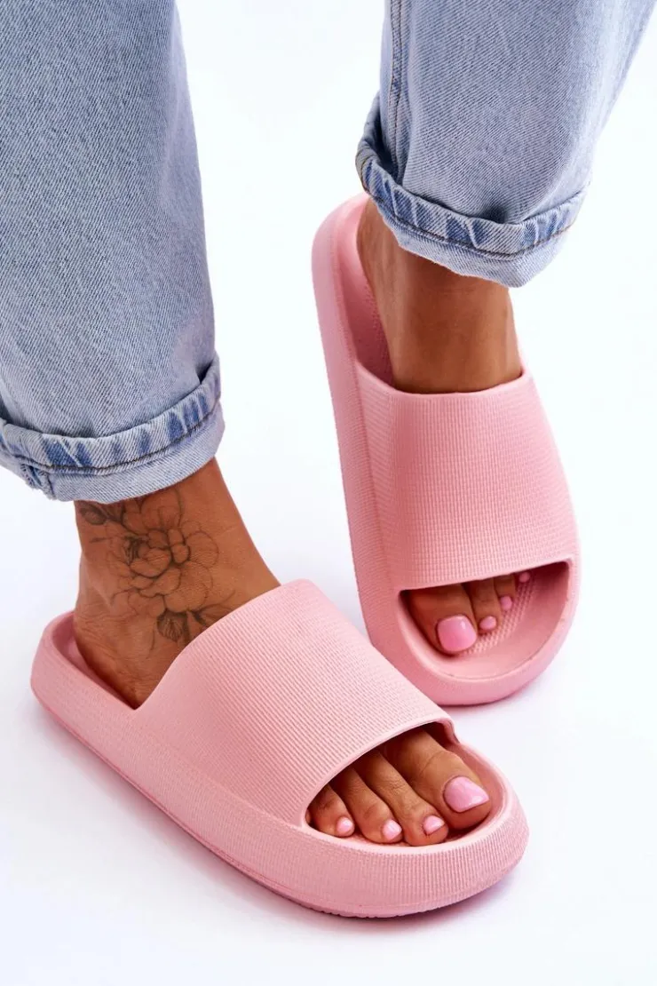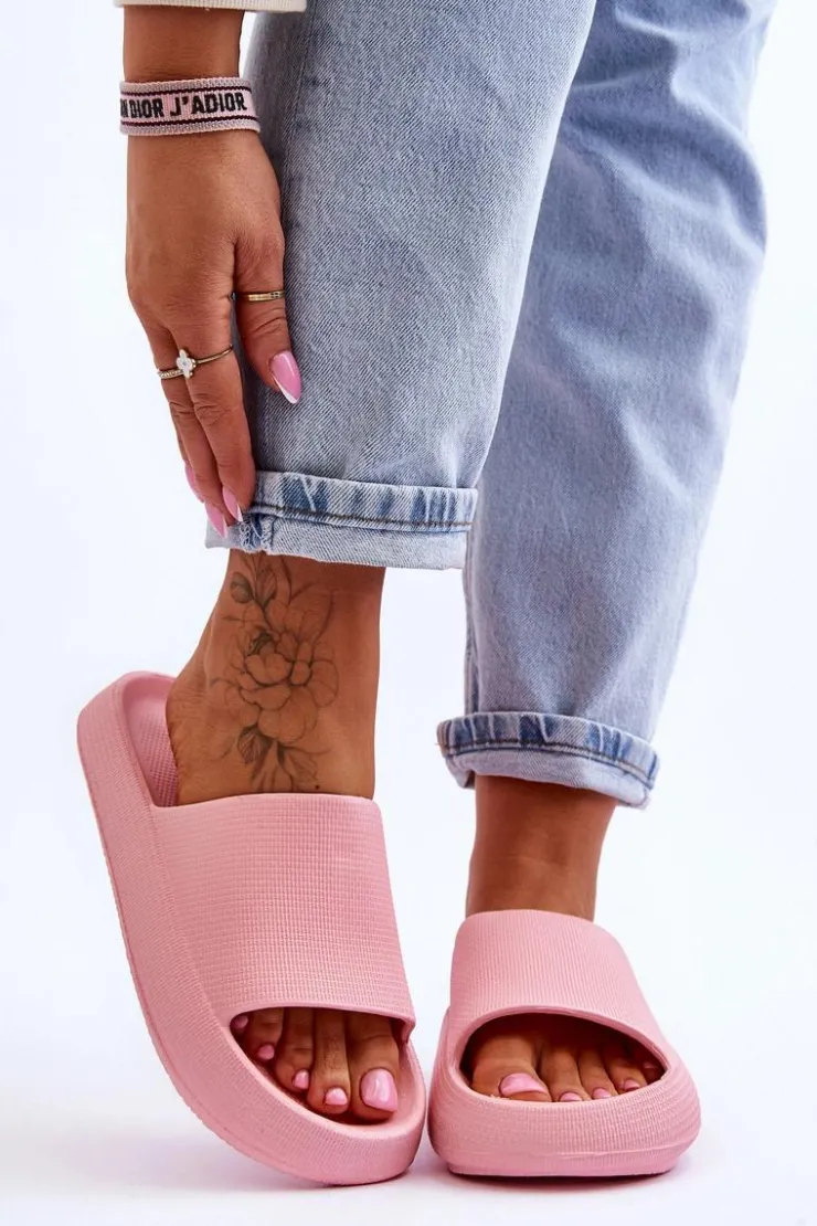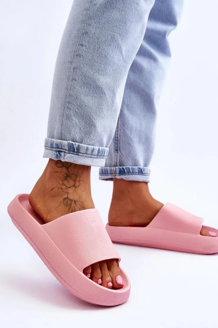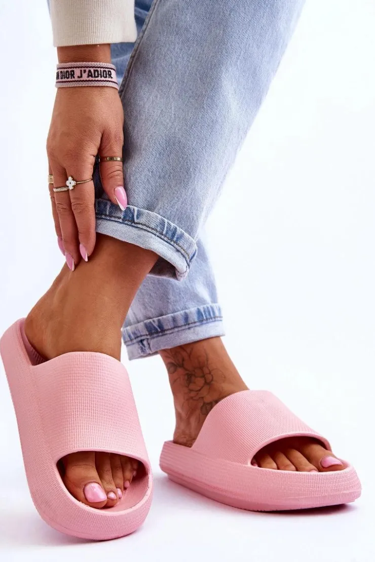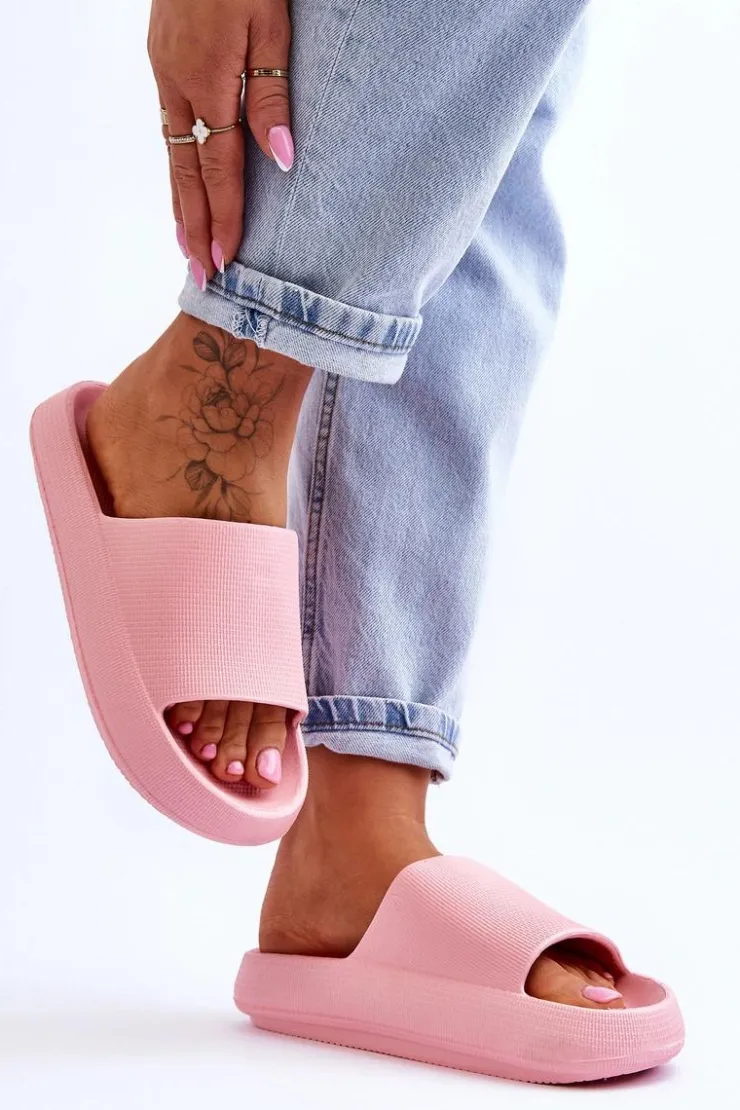 Damskie Boto Modne Lekkie Klapki Na Masywnej Podeszwie Różowe Rebel