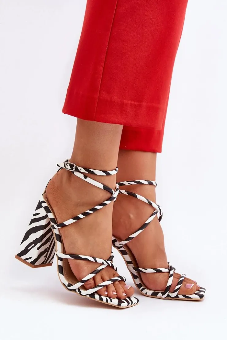 Cudowne sandałki damskie zostały wykonane z eko skóry. Ten ciekawy fason pięknie prezentuje się na nodze. Miękka wkładka z eko skóry zapewni komfort przez dłuższy czas. Obcas w postaci słupka szerszego u dołu. Sandałki posiadają regulowany pasek zapinany na sprzączkę. Idealne na imprezę, uroczystość rodzinną czy randkę! Koniecznie powinnaś je mieć! Przy wyborze rozmiaru prosimy sugerować się tabelą rozmiarów.