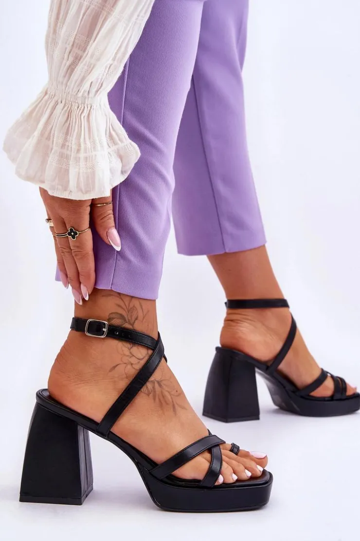 Wyjątkowe sandałki damskie wykonane z eko skóry świetnie sprawdzą się w wielu stylizacjach! Miękka wkładka zapewni wygodne użytkowanie. Sandałki posiadają z przodu paseczki. Zapinane wokół kostki na regulowany pasek ze sprzączką. Model ten został osadzony na masywnym, wyższym obcasie i platformie. Przy wyborze rozmiaru prosimy sugerować się tabelą rozmiarów.