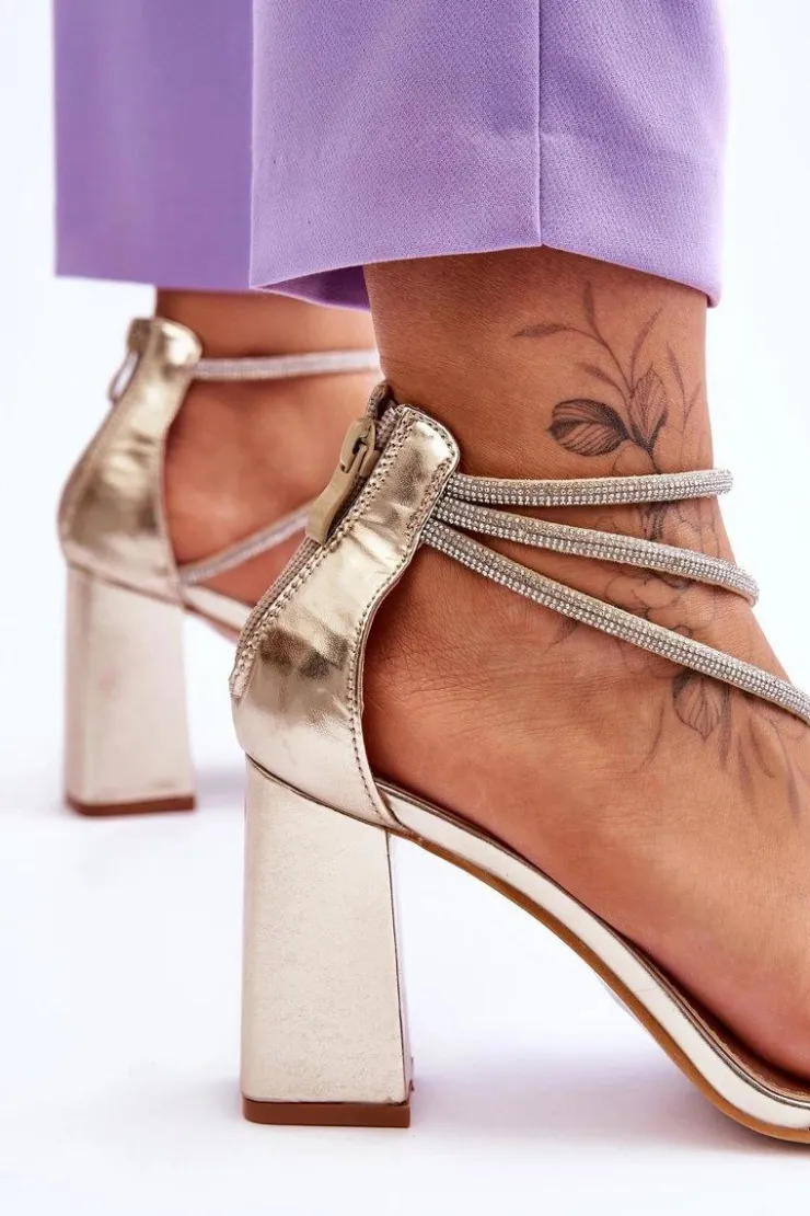 Cudne sandały na obcasie w postaci słupka zostały wykonane z eko skóry. Sandałki posiadają na wysokości kostki paseczki z dżetami imitującymi cyrkonie. Nosek odkryty, kwadratowy. Wkładka z eko skóry zapewni komfort podczas użytkowania. Model ten jest zapinany na suwak z tyłu cholewki. Sandałki z pewnością wykorzystasz do wielu stylizacji! Przy wyborze rozmiaru prosimy sugerować się tabelą rozmiarów.