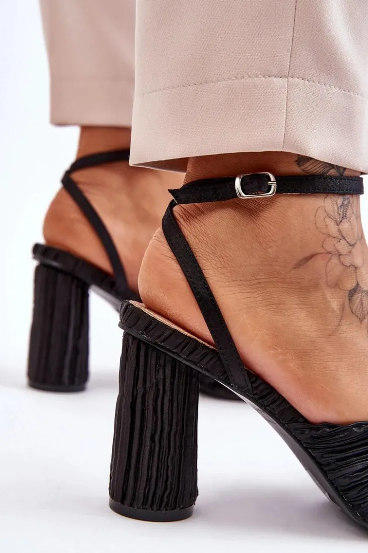 Wyjątkowe sandały na obcasie w postaci stabilnego słupka. Buty te posiadają z przodu kokardę, która dodaje tym butom elegancji. Miękka wkładka z eko skóry zadba o Twój komfort podczas użytkowania. Model ten świetnie sprawdzi się na różnego rodzaju ważnych uroczystościach. Ten model na pewno Ci się spodoba! Przy wyborze rozmiaru prosimy sugerować się tabelą rozmiarów.