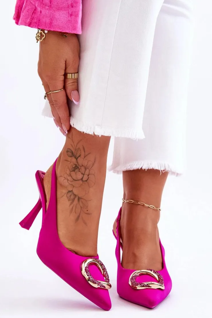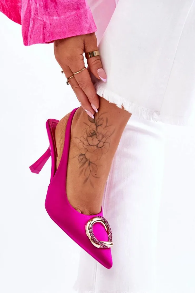 Niesamowite szpilki z pewnością przypadną do gustu niejednej miłośniczce modowych inspiracji! Zostały wykonane z materiału tekstylnego. Na przodzie znajduje się elegancka ozdoba z dżetami imitującymi cyrkonie. Nosek w szpic oraz obcas w postaci szpilki optycznie wysmuklą nogi. Miękka wkładka została wykonana z eko skóry. Przy wyborze rozmiaru prosimy sugerować się tabelą rozmiarów.