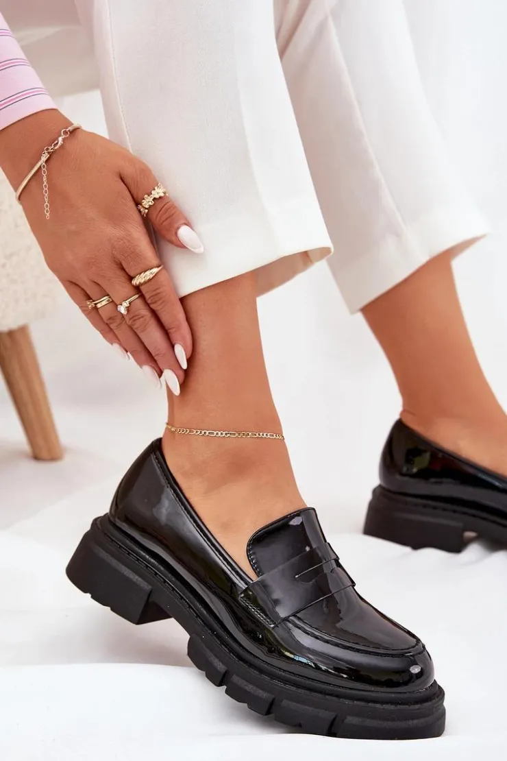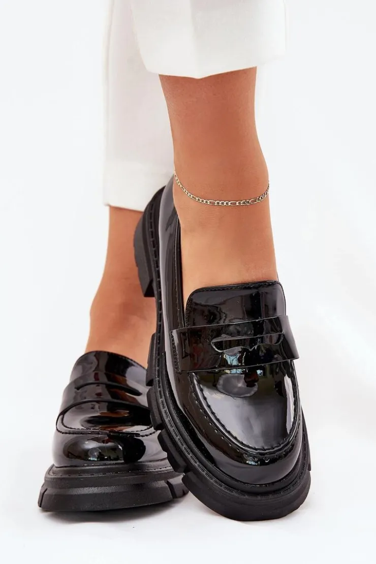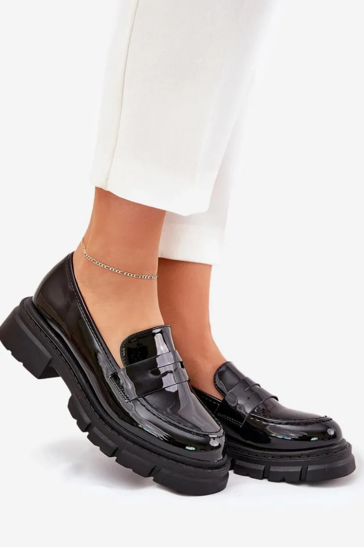 Mokasyny wykonane z eko skóry, łączące klasyczny styl z nowoczesnym wyglądem. Osadzone na platformie i płaskim obcasie, zapewniają wygodę i stabilność. Model posiada zaokrąglone noski i paseczek z wycięciem, który nadaje im wyjątkowego charakteru. Idealne do codziennych stylizacji! Przy wyborze rozmiaru prosimy sugerować się tabelą rozmiarów.