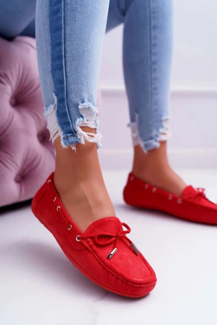 Damskie Boto Mokasyny Damskie Wygodne Eko-zamsz Czerwone Memfi