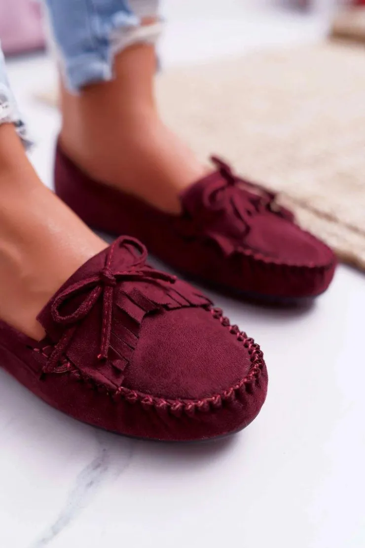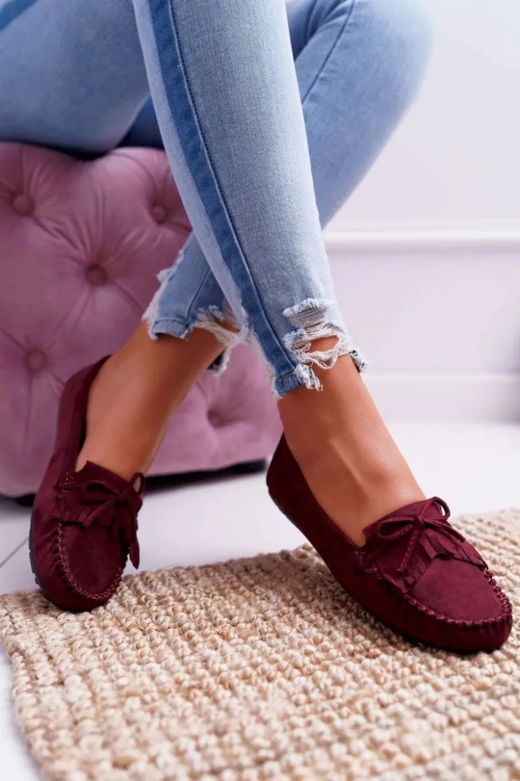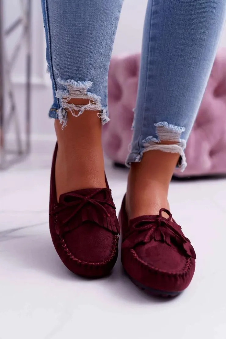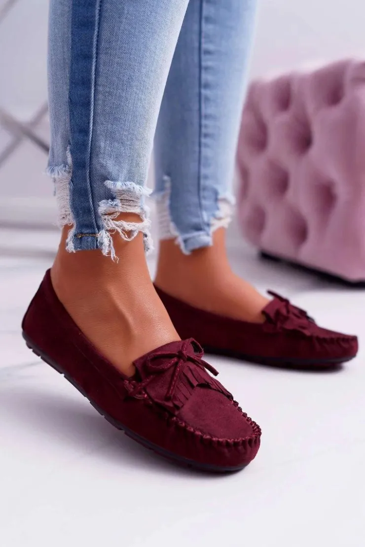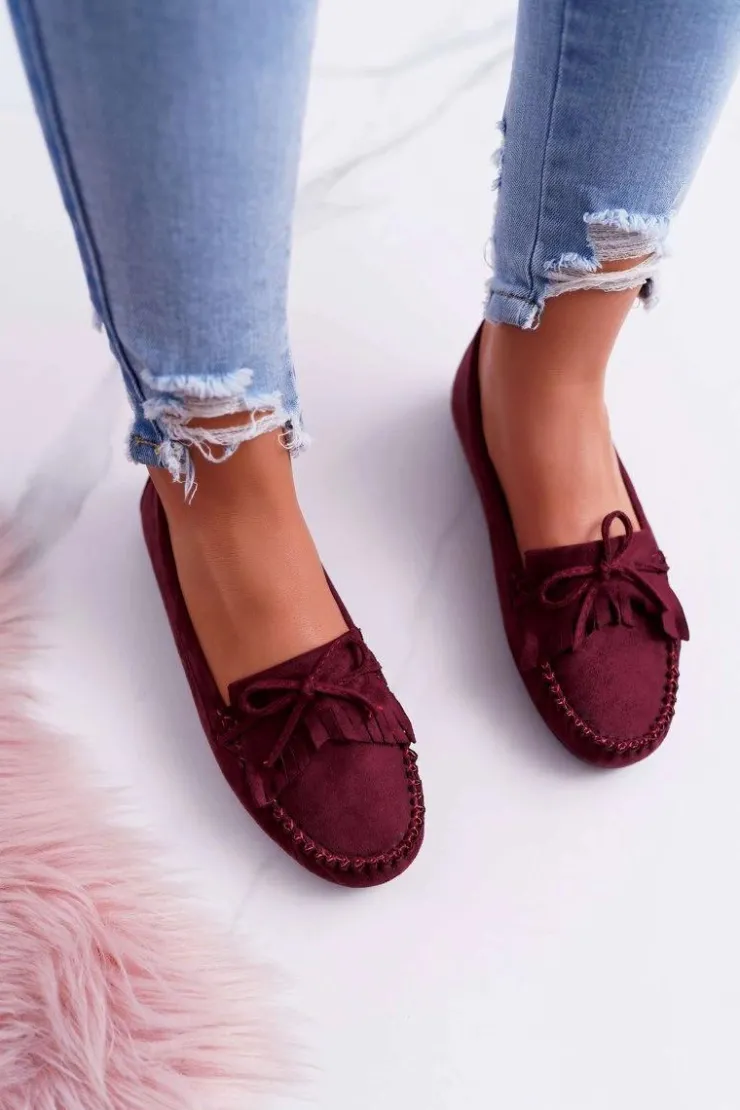 Damskie Boto Mokasyny Damskie Zamszowe Bordowe Espanto