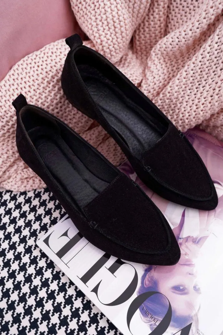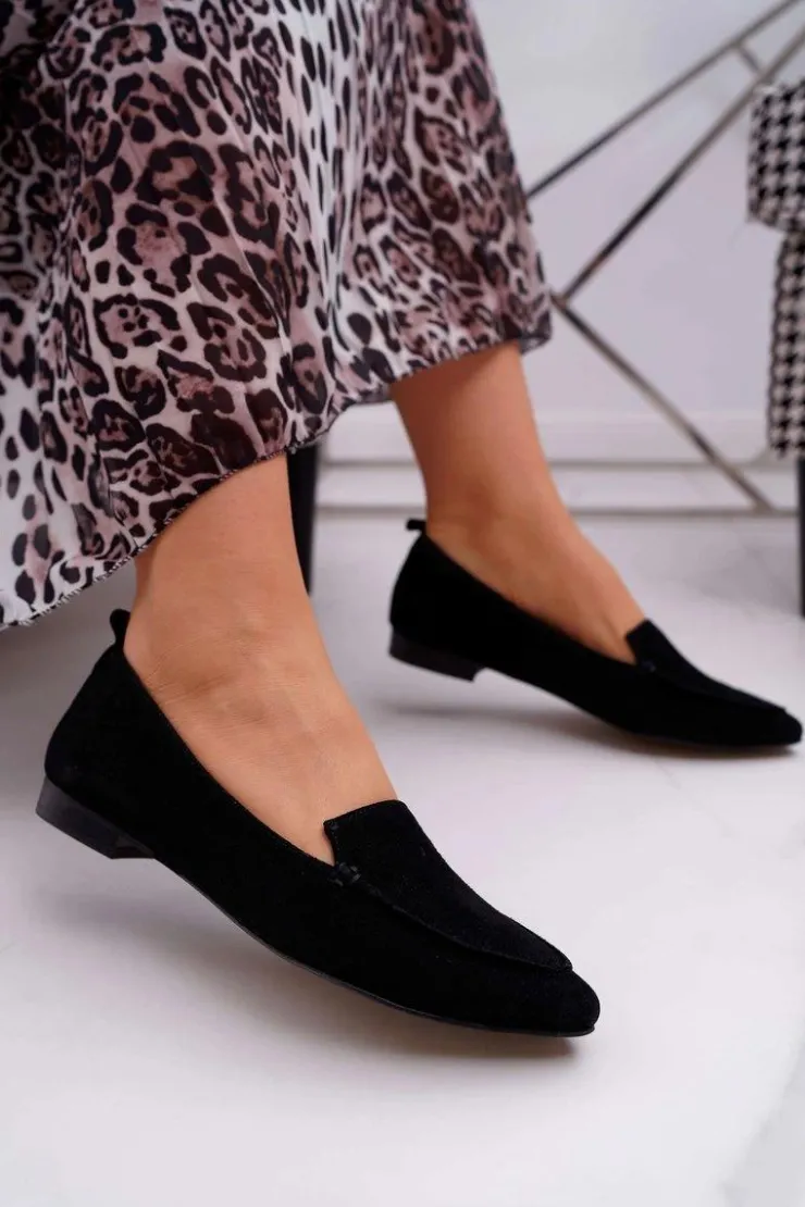 Damskie Boto Mokasyny Damskie Zamszowe Skóra Loafery Czarne Homny