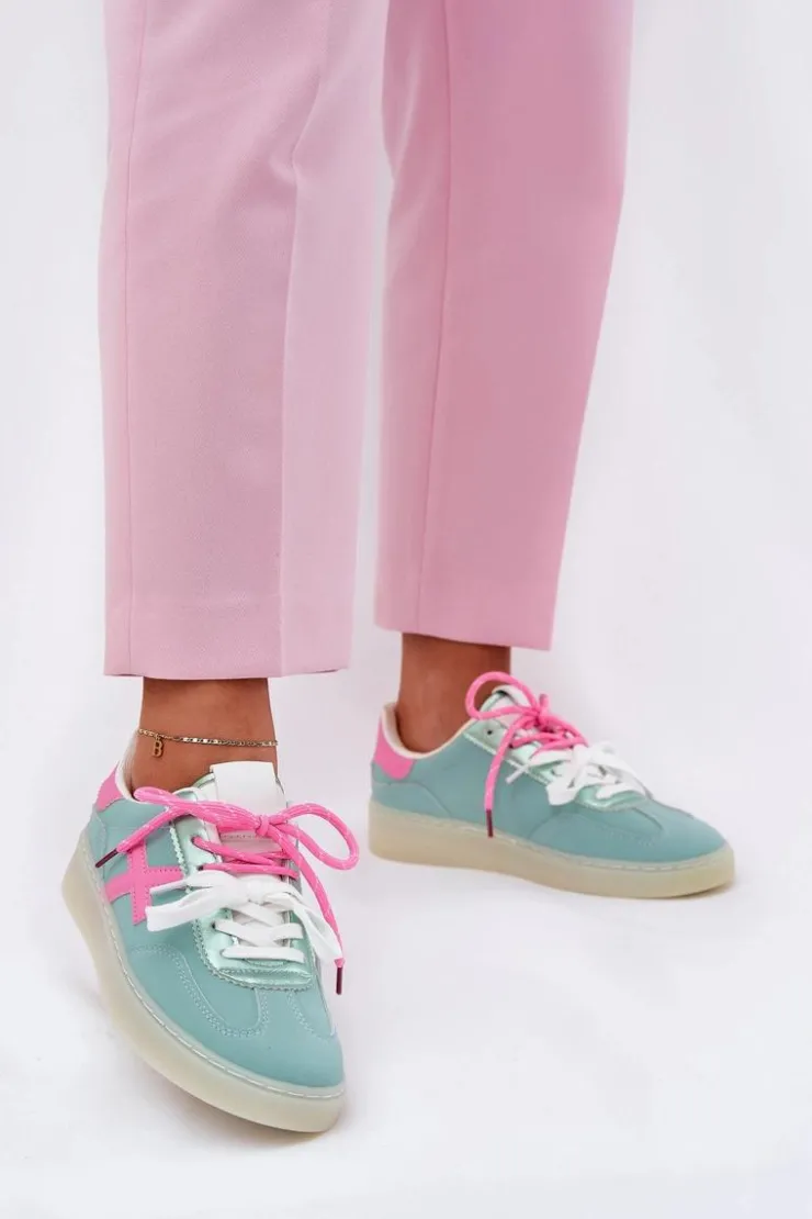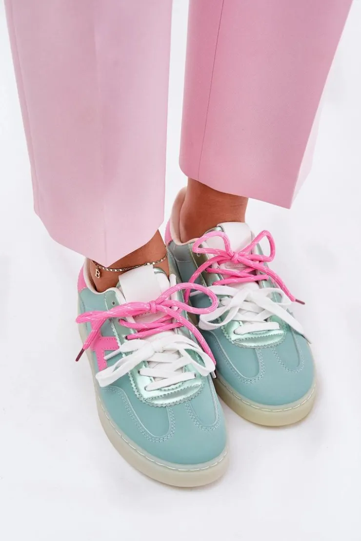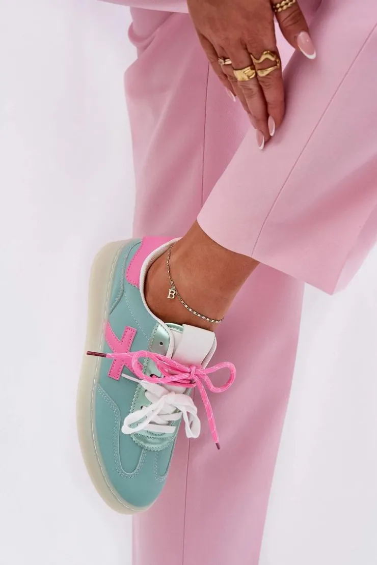 Damskie Boto Niskie Buty Sportowe Damskie W Panterkę Miętowo-Różowe Zelevelis