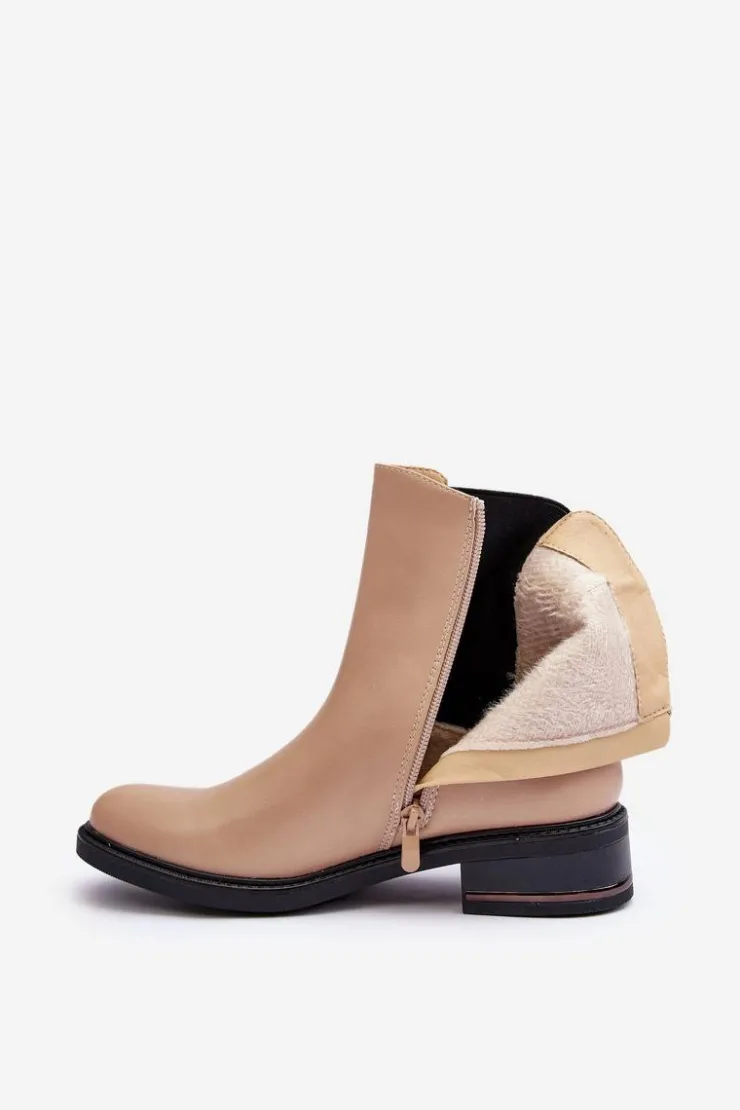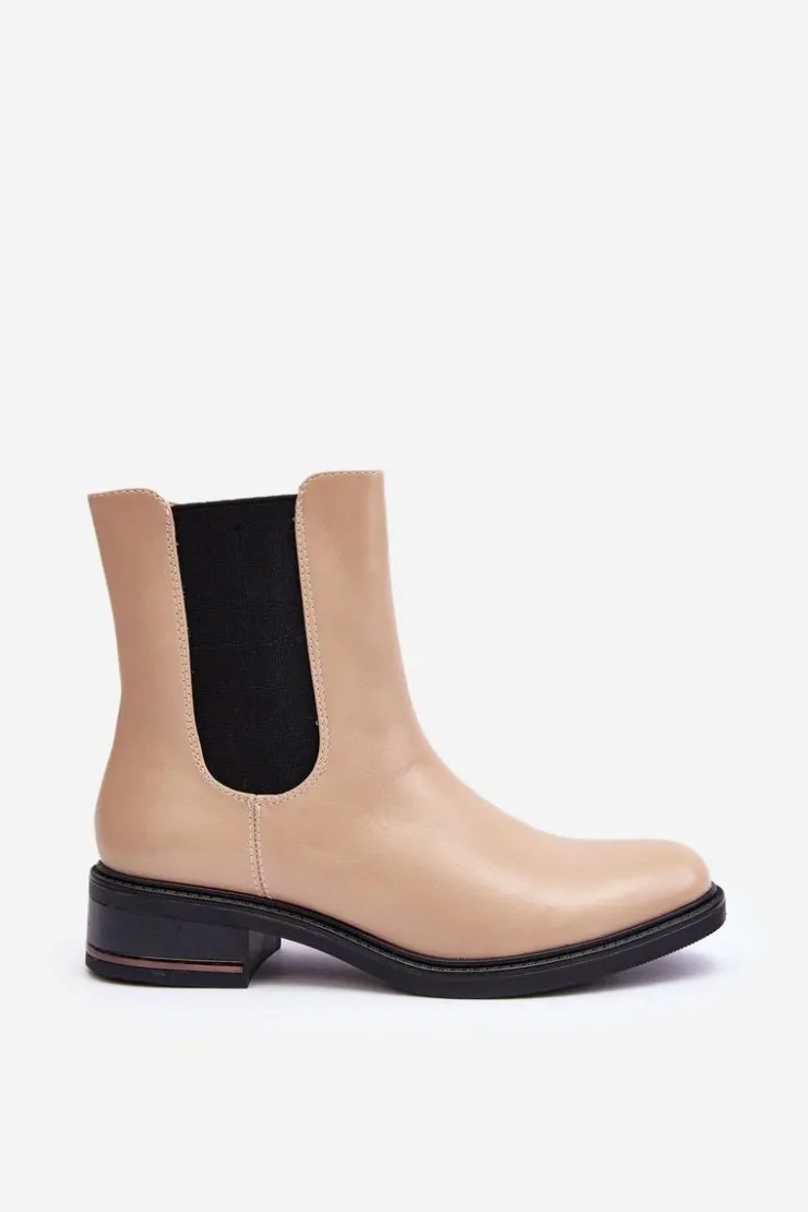 Klasyczne botki damskie z cholewką za kostkę. Osadzone na płaskim, stabilnym obcasie. Model wykonany z eko skóry. Idealne do jesiennych stylizacji! Przy wyborze rozmiaru prosimy sugerować się tabelą rozmiarów.