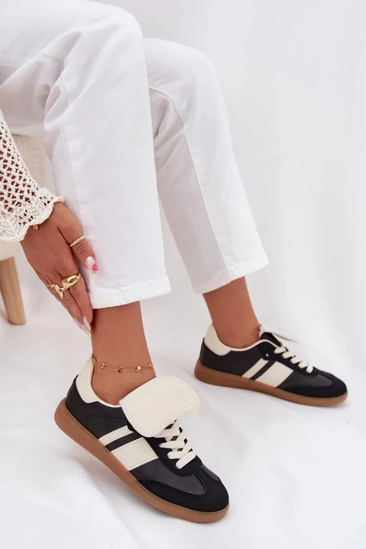 Damskie sneakersy wykonane z eko skóry. Charakteryzują się unikalnym, wywiniętym językiem, który nadaje im nowoczesny wygląd. Oferują komfort dzięki miękkiej wkładce z piankowego tworzywa, która zapewnia doskonałą amortyzację i wygodę przez cały dzień. Sznurowane, co pozwala na idealne dopasowanie do stopy. Te sneakersy to świetny wybór na co dzień. Przy wyborze rozmiaru prosimy kierować tabelą rozmiarów.