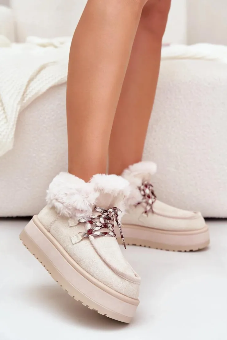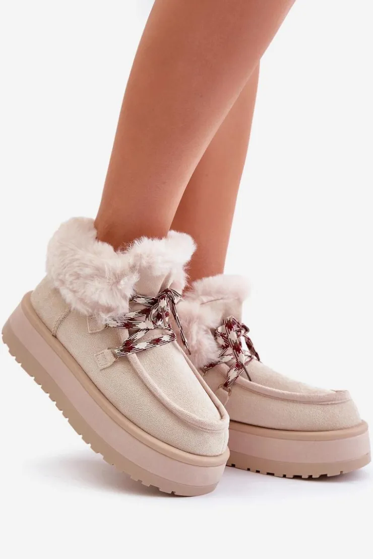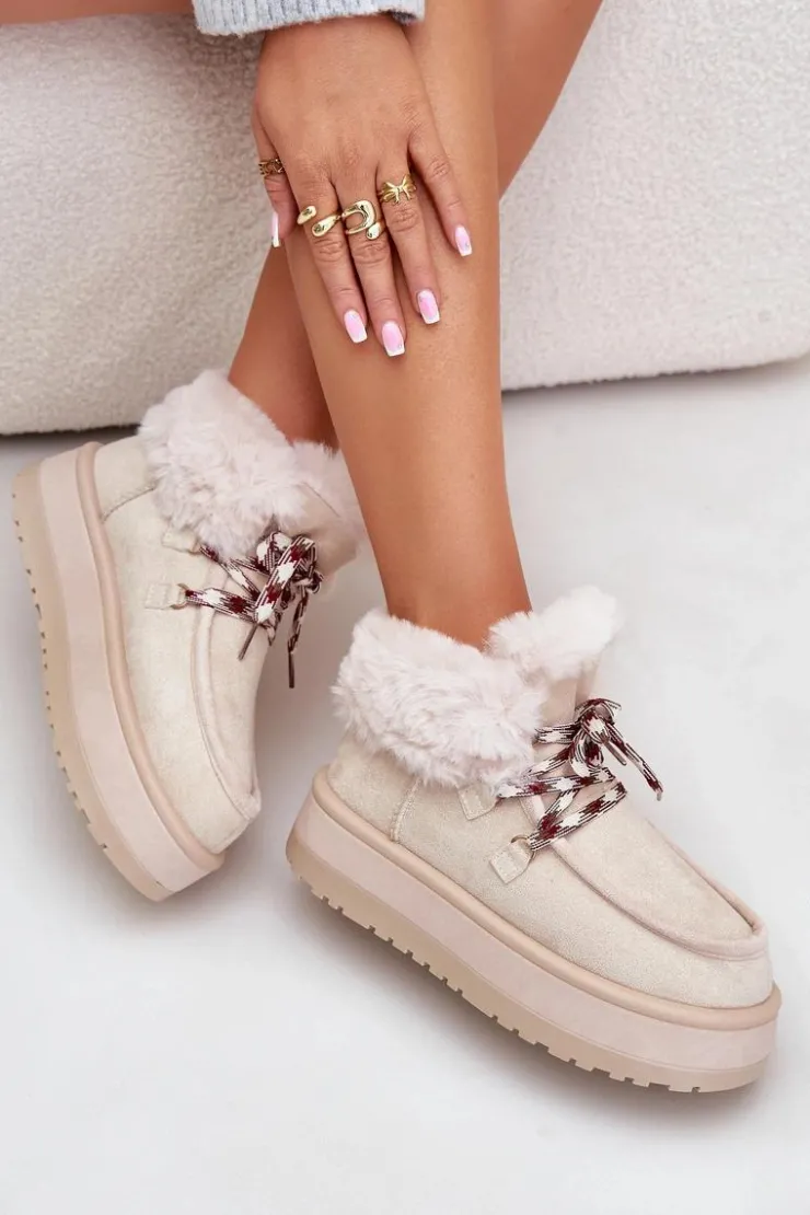 Damskie Boto Niskie Śniegowce Damskie Na Platformie Z Futerkiem Jasnobeżowe Neathren