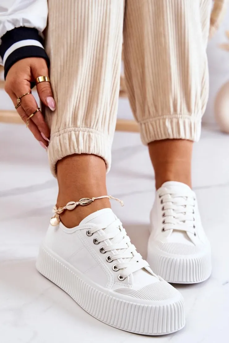 Modne trampki na masywnej, gumowej platformie. Buty posiadają materiałową cholewkę oraz antypoślizgową podeszwę. Świetny model, który będzie pasował do wielu stylizacji! Nosek jest wzmacniany gumowym tworzywem. Trampki posiadają klasyczne wiązanie. Koniecznie sprawdź całą naszą kolekcję trampek! Przy wyborze rozmiaru prosimy sugerować się tabelą rozmiarów.