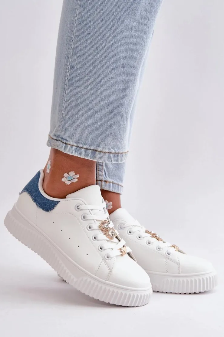 Niskie trampki damskie wykonane z eko skóry to połączenie stylu i wygody. Osadzone na platformie, te trampki wyróżniają się uroczymi przypinkami na sznurowadłach, które dodają im wyjątkowego uroku. To idealne obuwie do codziennych stylizacji, które łączy modny wygląd z komfortem noszenia. Przy wyborze rozmiaru prosimy sugerować się tabelą rozmiarów.