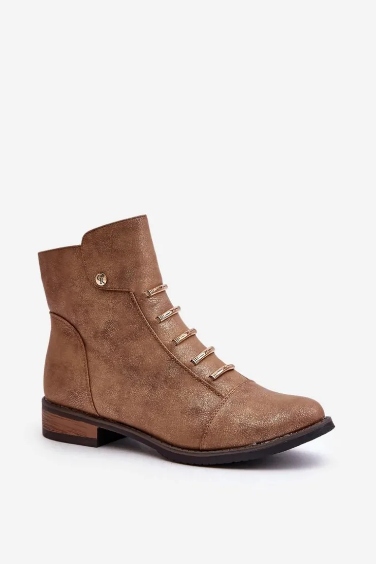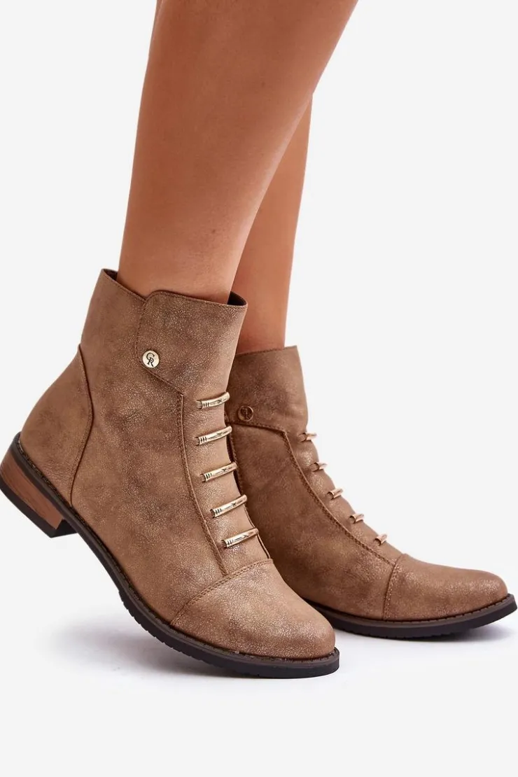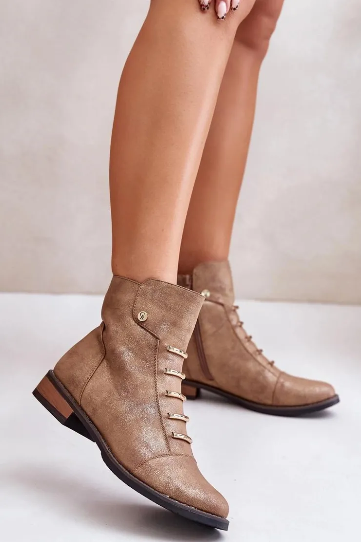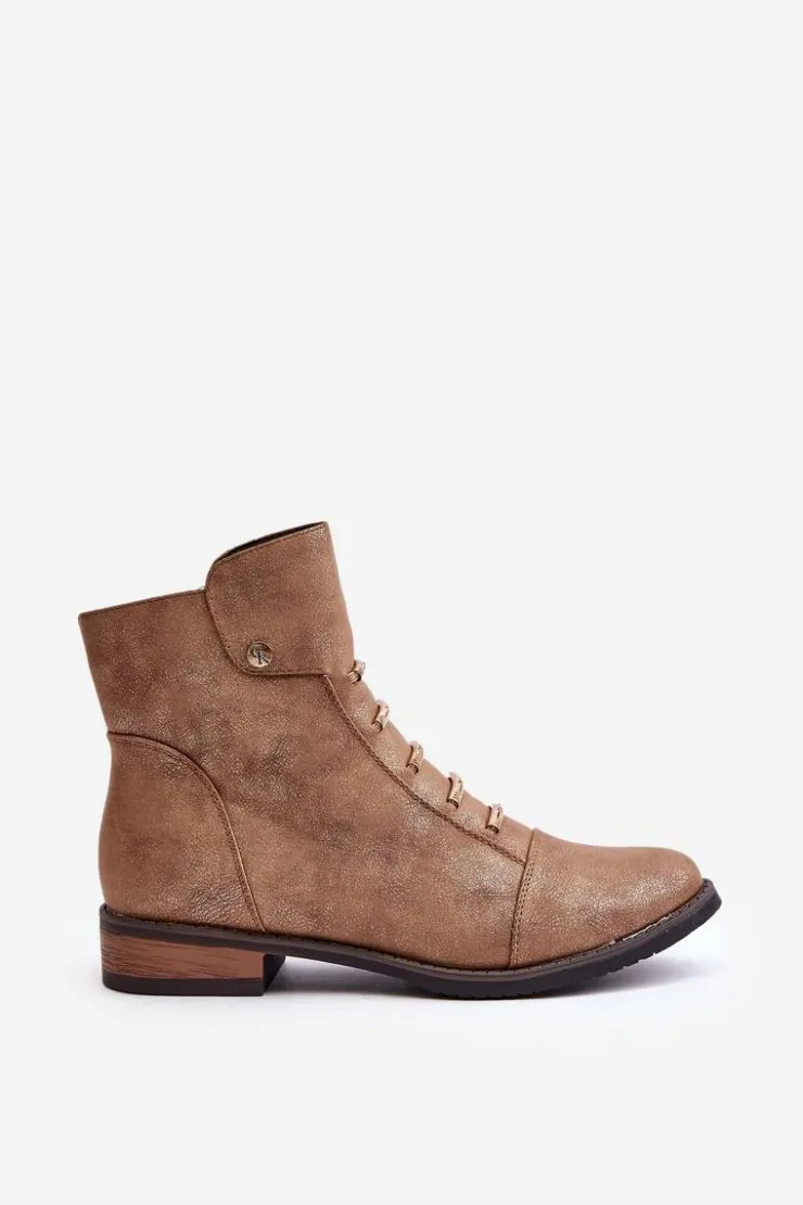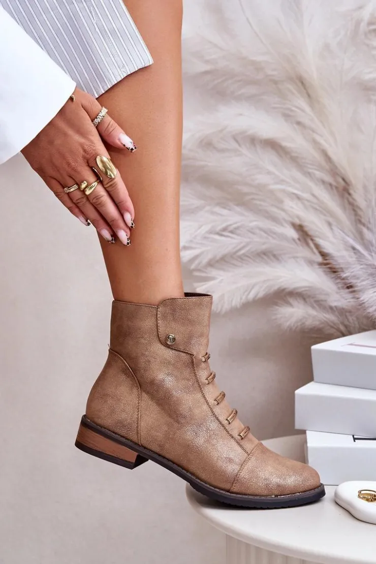 Damskie Boto Ocieplane Botki Damskie Na Płaskim Obcasie Złote Labise