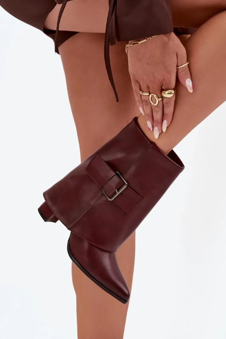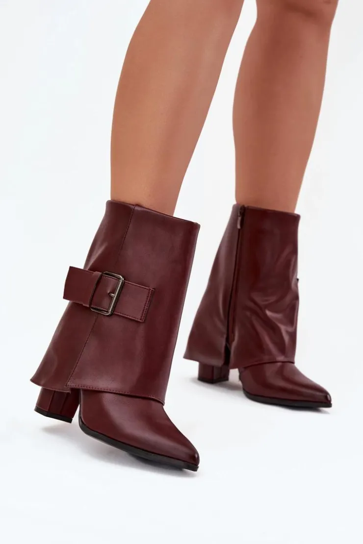 Modne botki z wywiniętą cholewką to doskonały wybór na sezon jesienno-zimowy. Osadzone na obcasie typu słupek, z noskami w szpic, optycznie wydłużają nogi, dodając sylwetce lekkości. Wykonane z eko skóry. Ocieplane kocem obuwniczym, gwarantują ciepło w chłodne dni. Duża klamra na cholewce stanowi subtelny, ale efektowny detal, który nadaje butom wyjątkowego charakteru. Zapinane na zamek. Idealne na każdą okazję, te botki będą eleganckim akcentem w Twoich stylizacjach. Przy wyborze rozmiaru prosimy sugerować się tabelą rozmiarów.