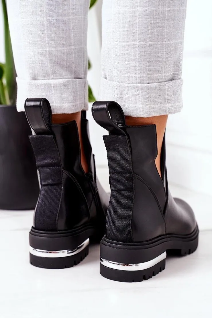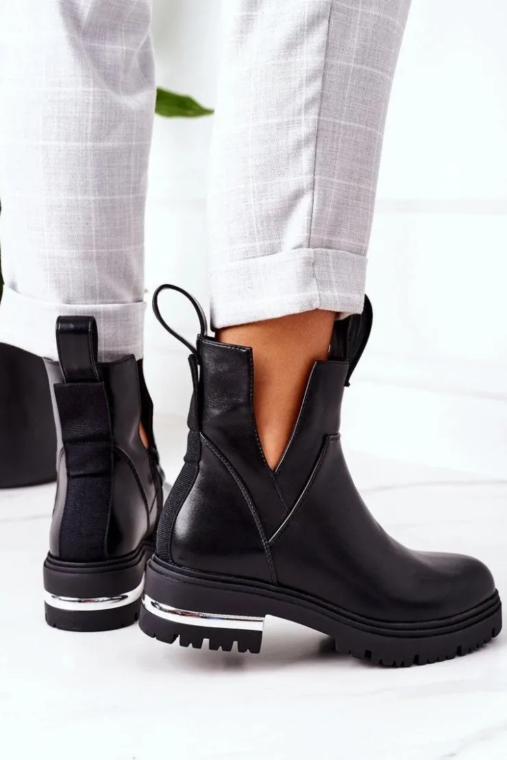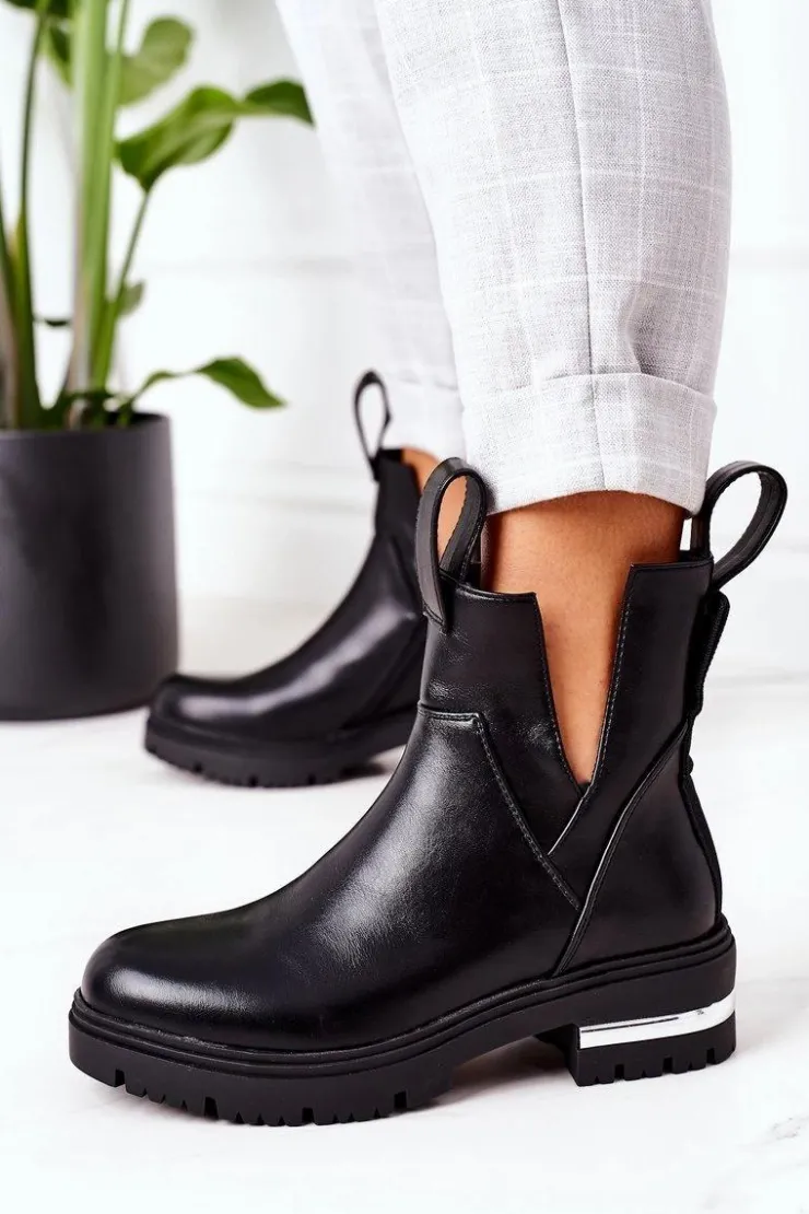 Clearance Boto Damskie Skórzane Klapki Z Ozdobą Czarne Roysa
