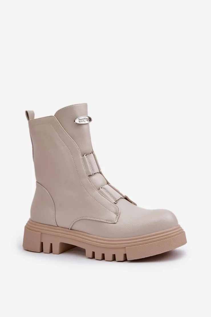 Damskie botki od marki Jezzi zostały wykonane z eko skóry. Zapinane na zamek, co ułatwia zakładanie i ściąganie obuwia. Wnętrze ocieplone kocem obuwniczym, który zapewni ciepło w mroźne dni. Noski zaokrąglone. Modny fason, który doskonale uzupełni wiele jesienno-zimowych stylizacji! Przy wyborze rozmiaru prosimy sugerować się tabelą rozmiarów.