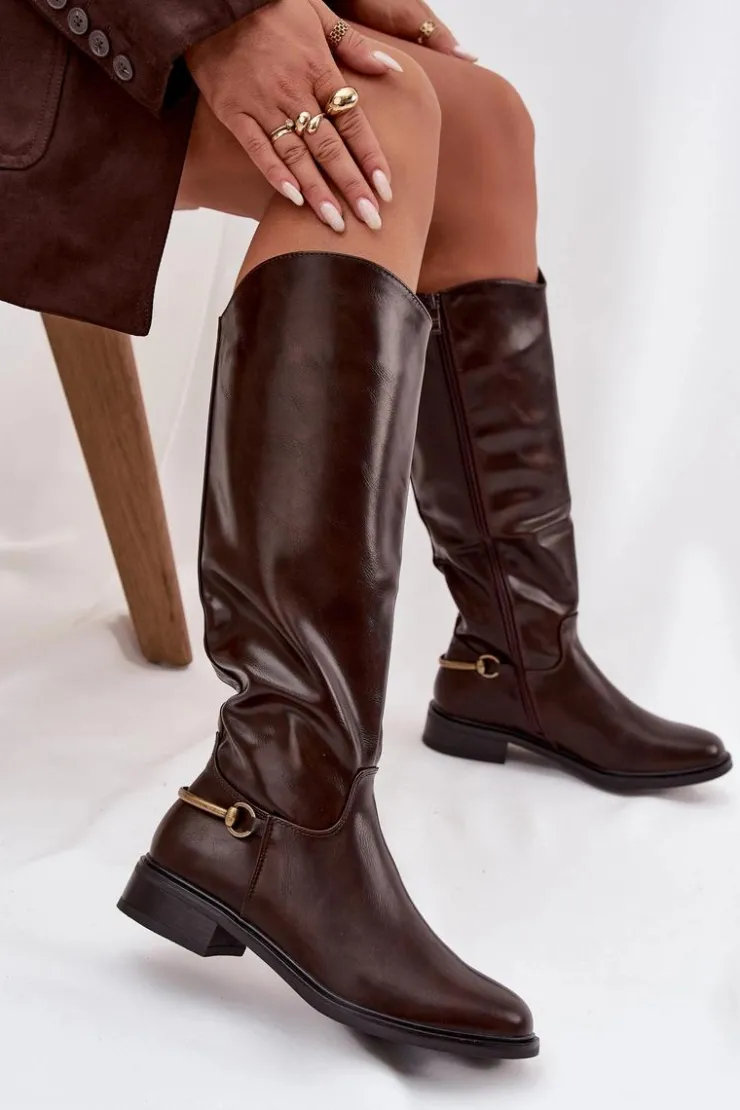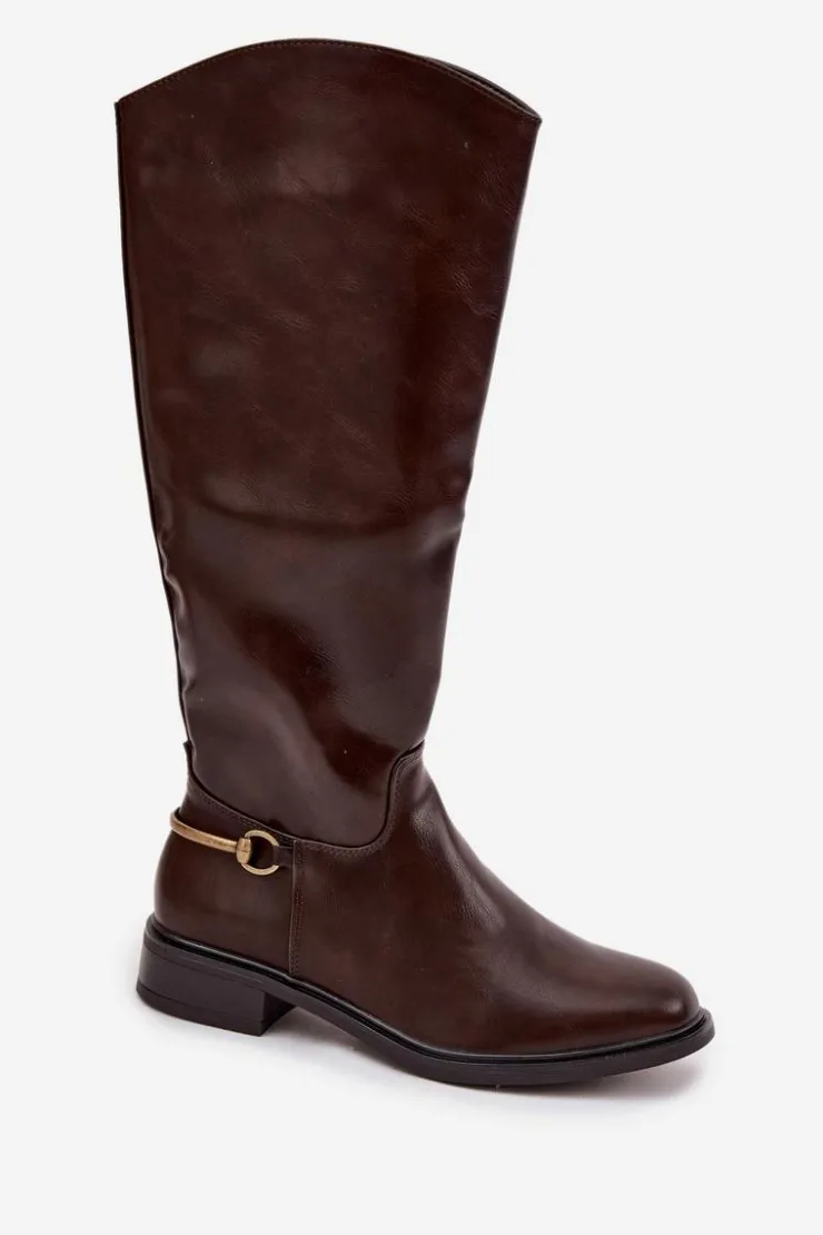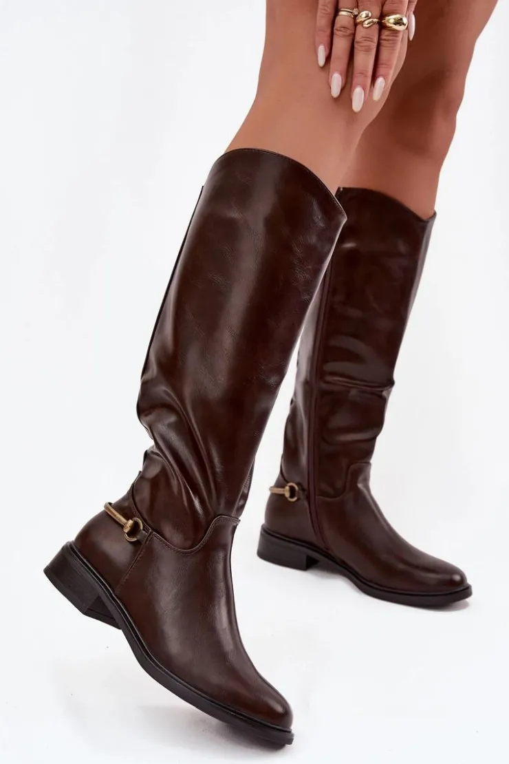 Damskie kozaki wykonane z eko skóry to doskonały wybór dla kobiet ceniących styl i wygodę w codziennym wydaniu. Model osadzony na płaskim obcasie zapewnia komfort noszenia przez cały dzień, a miękkie ocieplenie kocem obuwniczym gwarantuje przyjemne ciepło w chłodniejsze dni. Dzięki praktycznemu zapięciu na zamek buty są łatwe w zakładaniu i dobrze dopasowują się do nogi. Zaokrąglone noski nadają im klasycznego charakteru, natomiast złoty detal u dołu cholewki stanowi eleganckie wykończenie. To ponadczasowe kozaki, które znakomicie uzupełnią jesienno-zimowe stylizacje. Przy wyborze rozmiaru prosimy kierować tabelą rozmiarów.