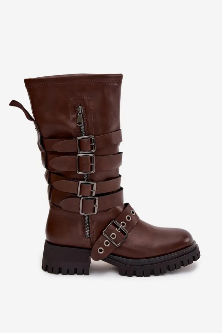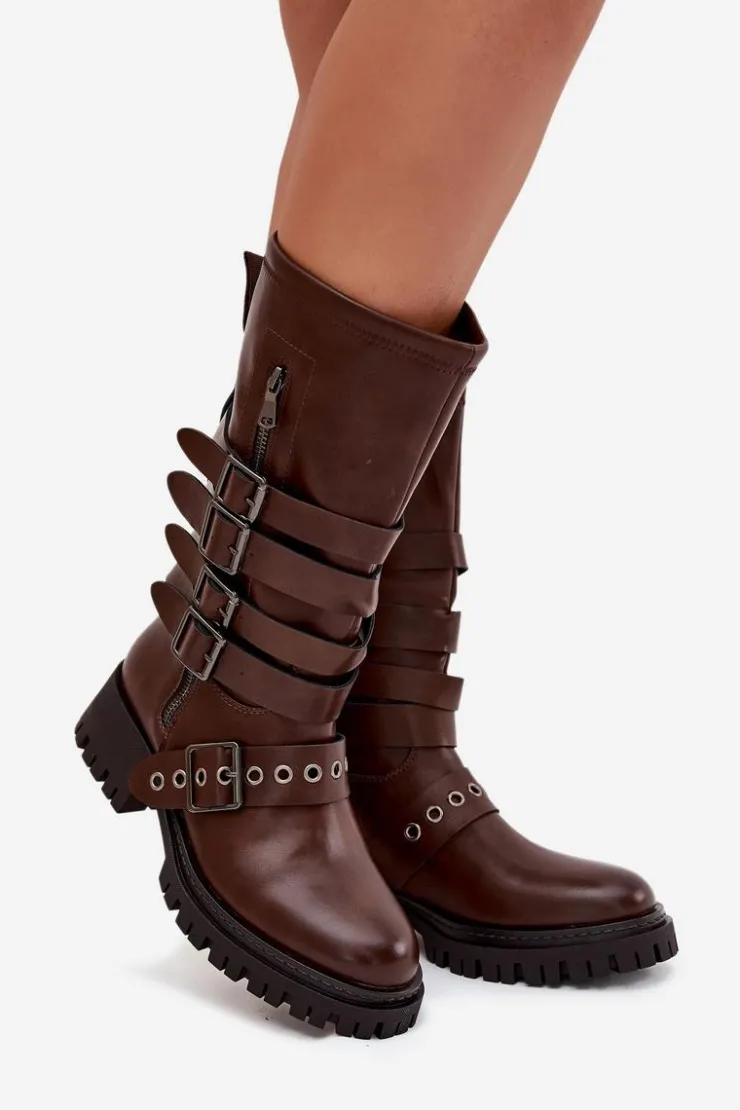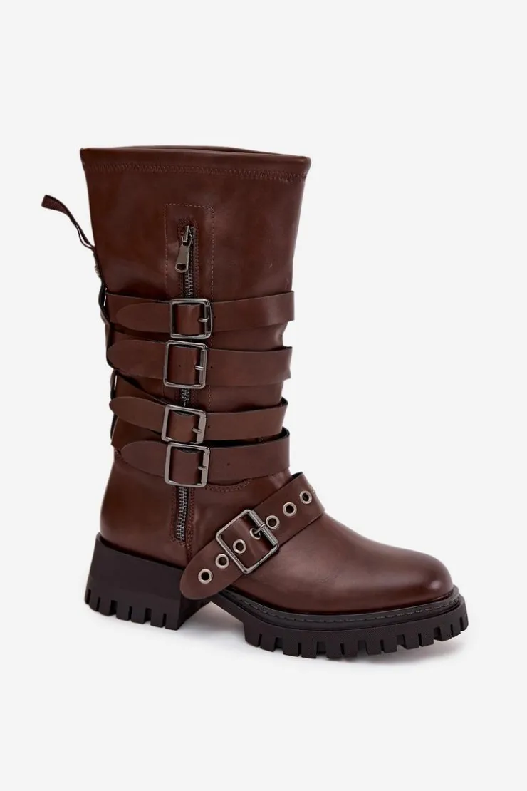 Kozaki damskie z cholewką do połowy łydki to stylowa i praktyczna propozycja na chłodniejsze dni. Model wsuwany z dodatkowym suwakiem zapewnia wygodę zakładania i dobre dopasowanie do nogi. Stabilny obcas w formie klocka gwarantuje komfort podczas chodzenia, a ozdobne paski z klamrami nadają całości charakteru i modnego, wyrazistego wyglądu. To kozaki, które doskonale sprawdzą się w codziennych stylizacjach, dodając im oryginalnego akcentu. Przy wyborze rozmiaru prosimy sugerować się tabelą rozmiarów.