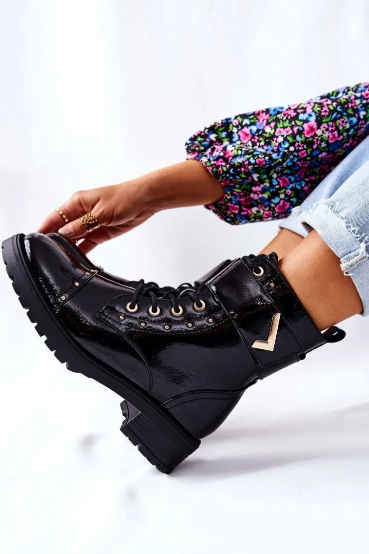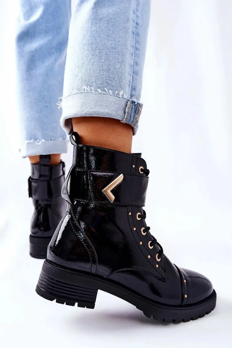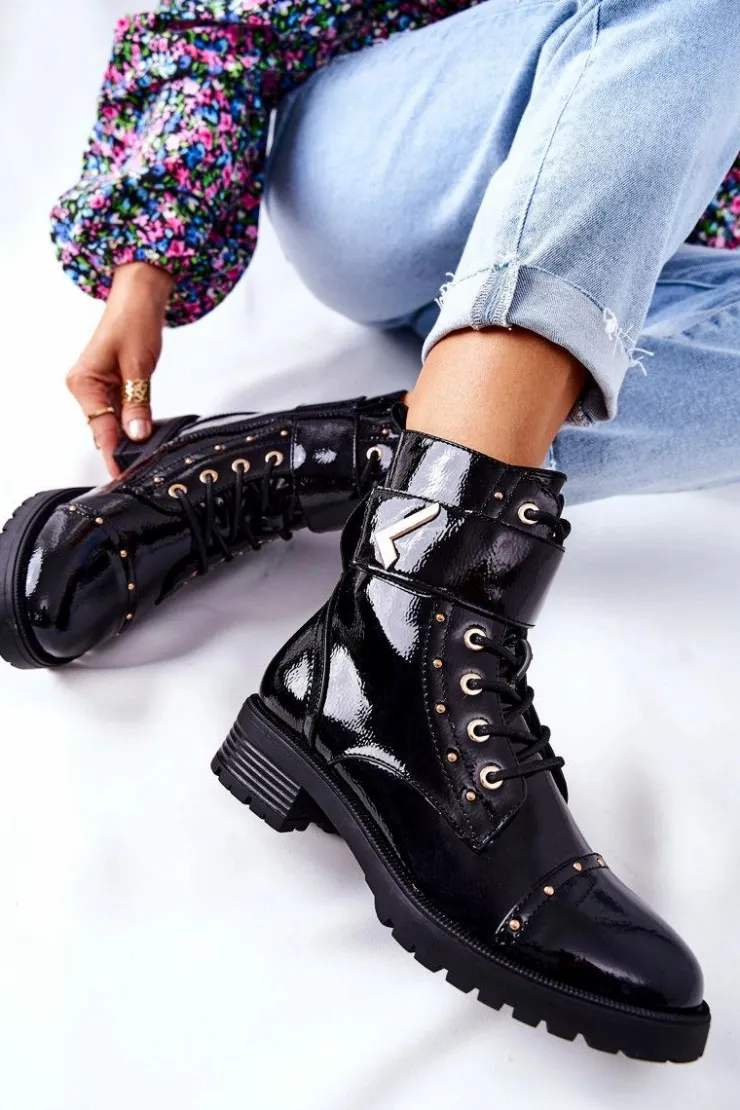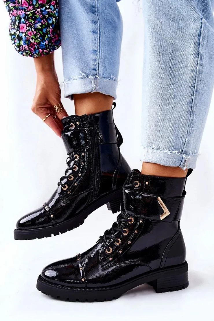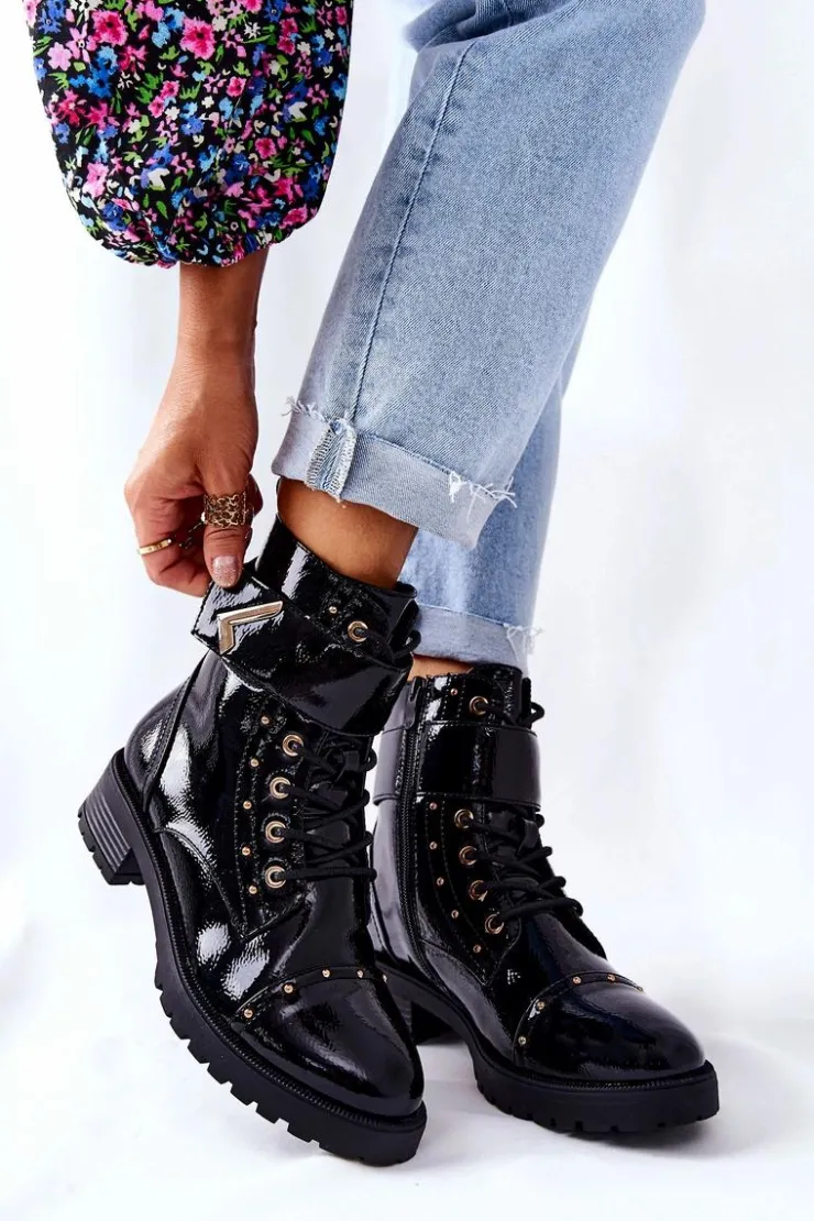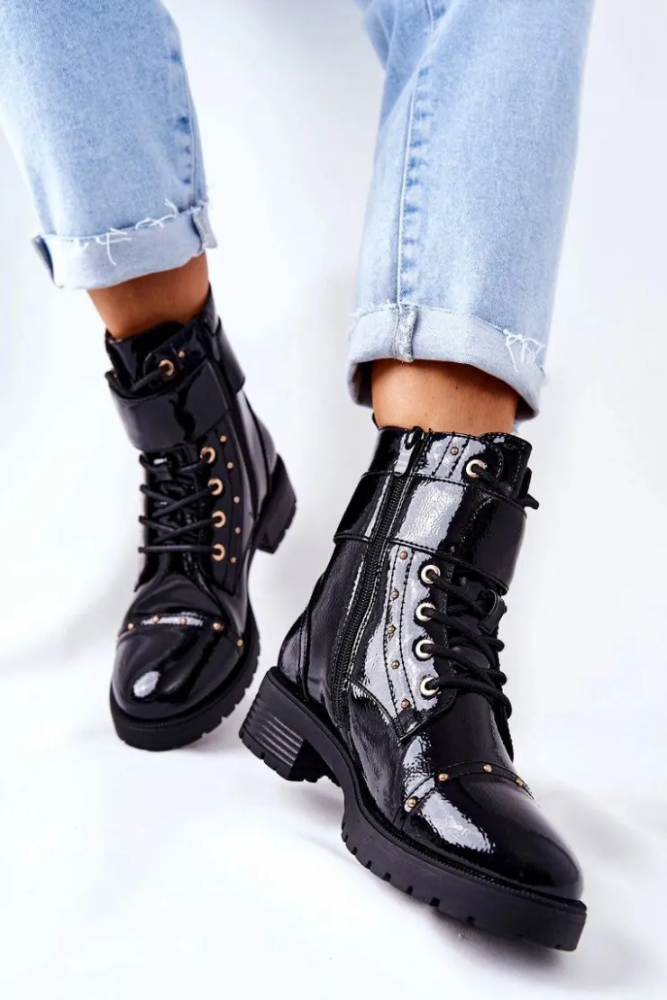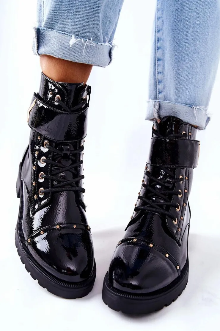 Damskie Boto Ocieplane Lakierowane Botki Czarne Colira