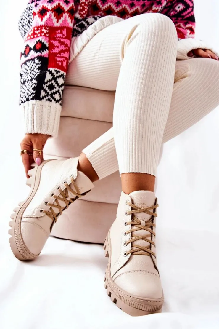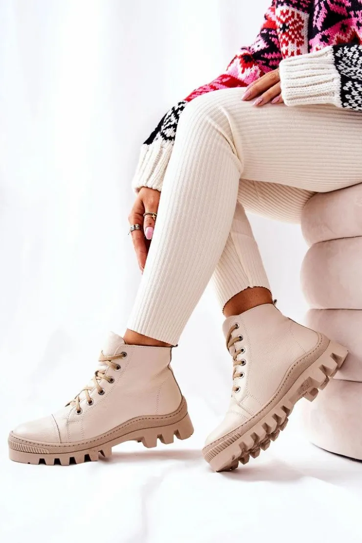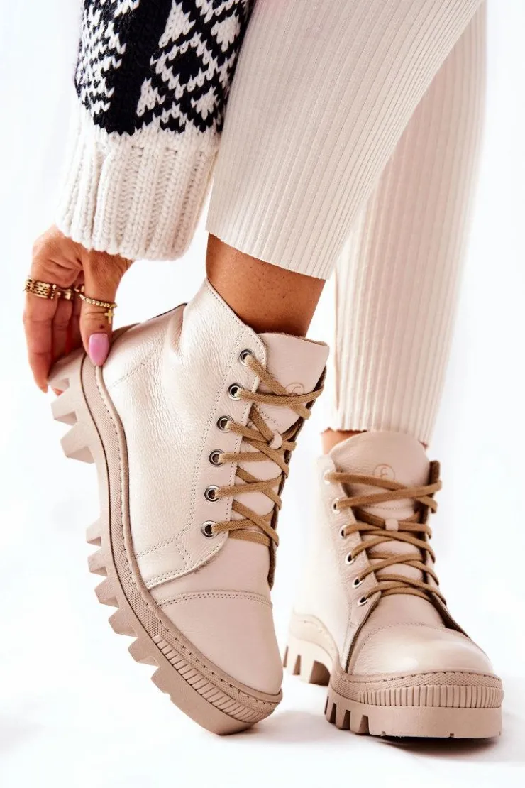 Wysokie trampki-botki zostały wykonane z naturalnej skóry. Posiadają traperową, grubą podeszwę, która będzie idealnie izolować od zimnego podłoża. Wiązanie sprawia, że można dopasować je do tęgości nogi. Trampki w środku posiadają ocieplenie w postaci koca obuwniczego oraz sztywny zapiętek. Sprawdź pozostałą naszą ofertę ocieplanych trampków i botków! Przy wyborze rozmiaru prosimy sugerować się tabelą rozmiarów.