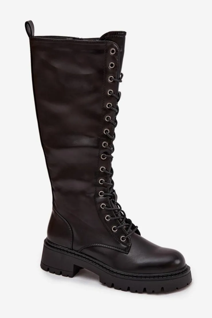Kozaki glany damskie wykonane z eko skóry. Model wyróżnia się stylowym wyglądem, który świetnie wpisuje się w aktualne trendy. Buty są zapinane na zamek, co ułatwia ich zakładanie, a sznurowanie pozwala na idealne dopasowanie do nogi, zapewniając stabilność i wygodę podczas noszenia. Zaokrąglone noski nadają im klasycznego wyglądu, a ocieplane wnętrze wyłożone pianką pokrytą tkaniną gwarantuje komfort i ciepło w chłodniejsze dni. To uniwersalny model, który doskonale sprawdzi się w codziennych stylizacjach – zarówno z jeansami, jak i z sukienką w kontrastowym zestawieniu. Idealne dla kobiet, które lubią łączyć wygodę z wyrazistym stylem.