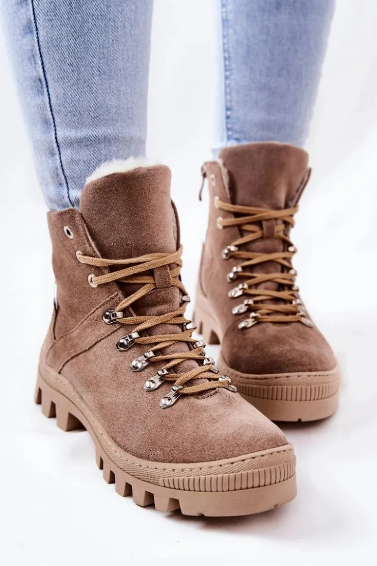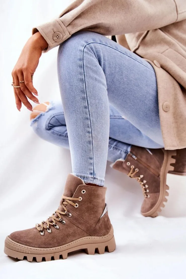 Trapero-botki zostały wykonane z naturalnej skóry. Posiadają traperową, grubą podeszwę, która będzie idealnie izolować od zimnego podłoża. Wiązanie sprawia, że można dopasować je do tęgości nogi. Buty w środku posiadają ocieplenie w postaci koca obuwniczego oraz sztywny zapiętek. Sprawdź pozostałą naszą ofertę ocieplanych botków! Przy wyborze rozmiaru prosimy sugerować się tabelą rozmiarów.
