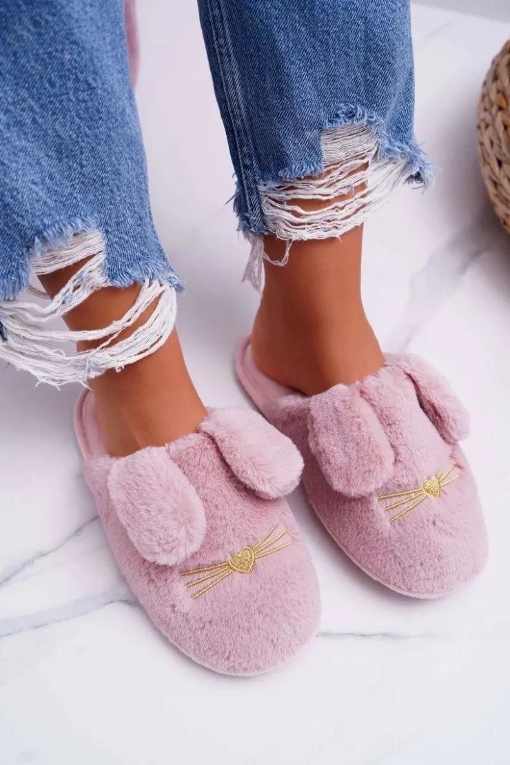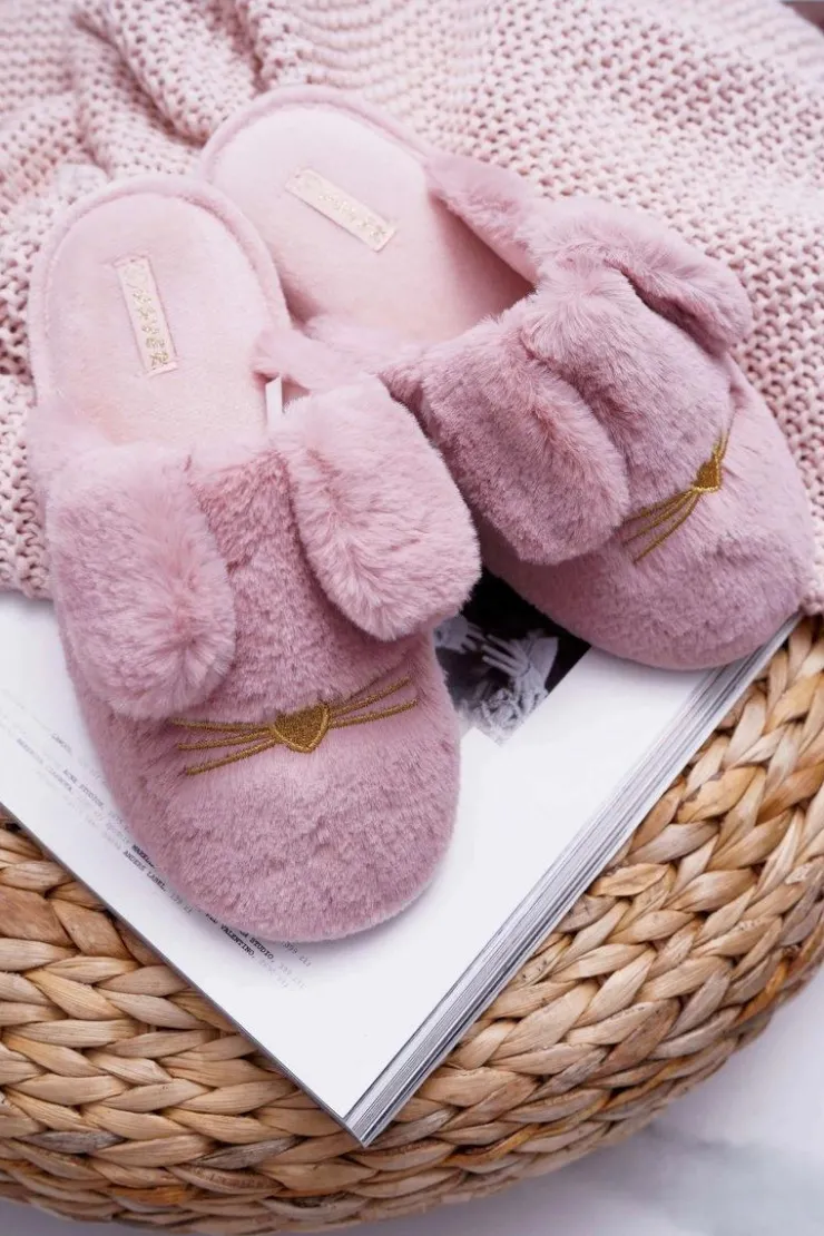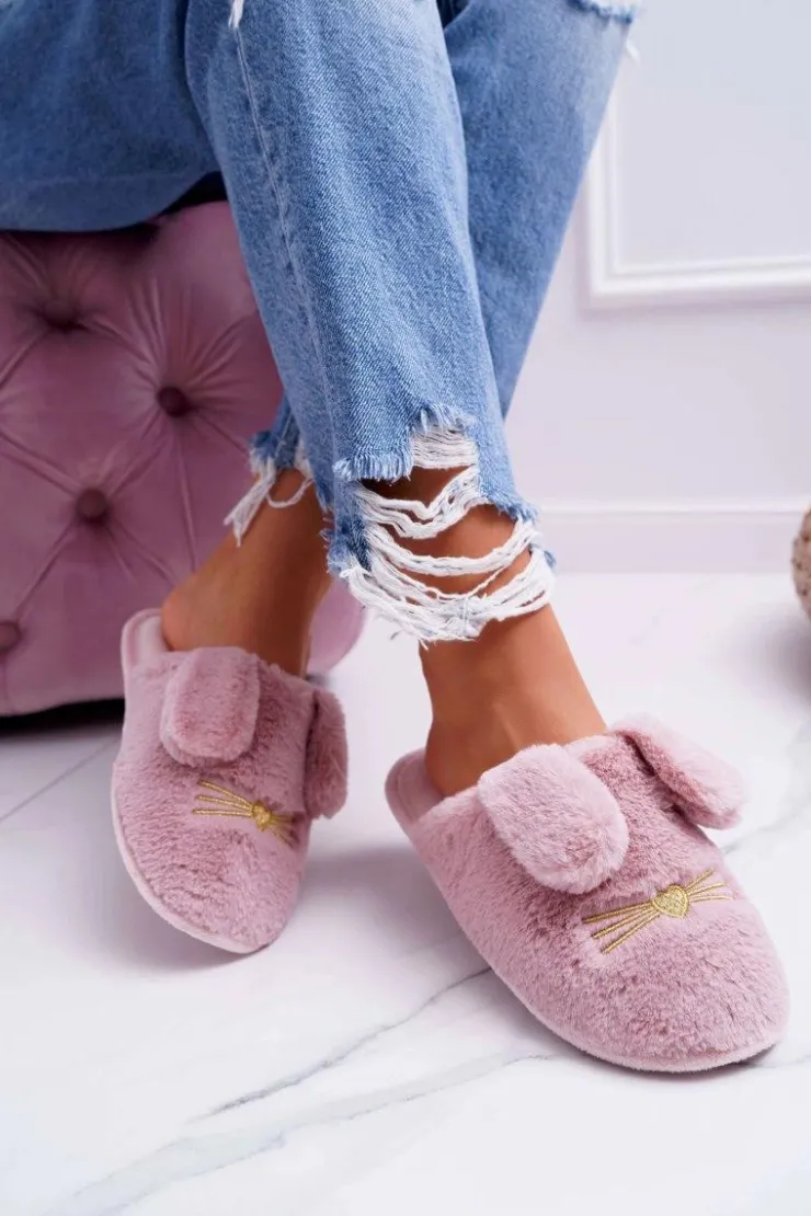 Damskie Boto Papcie Damskie Z Futerkiem I Uszkami Ciemny Róż Semmi