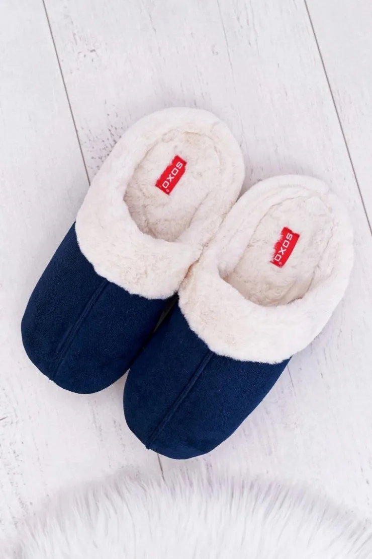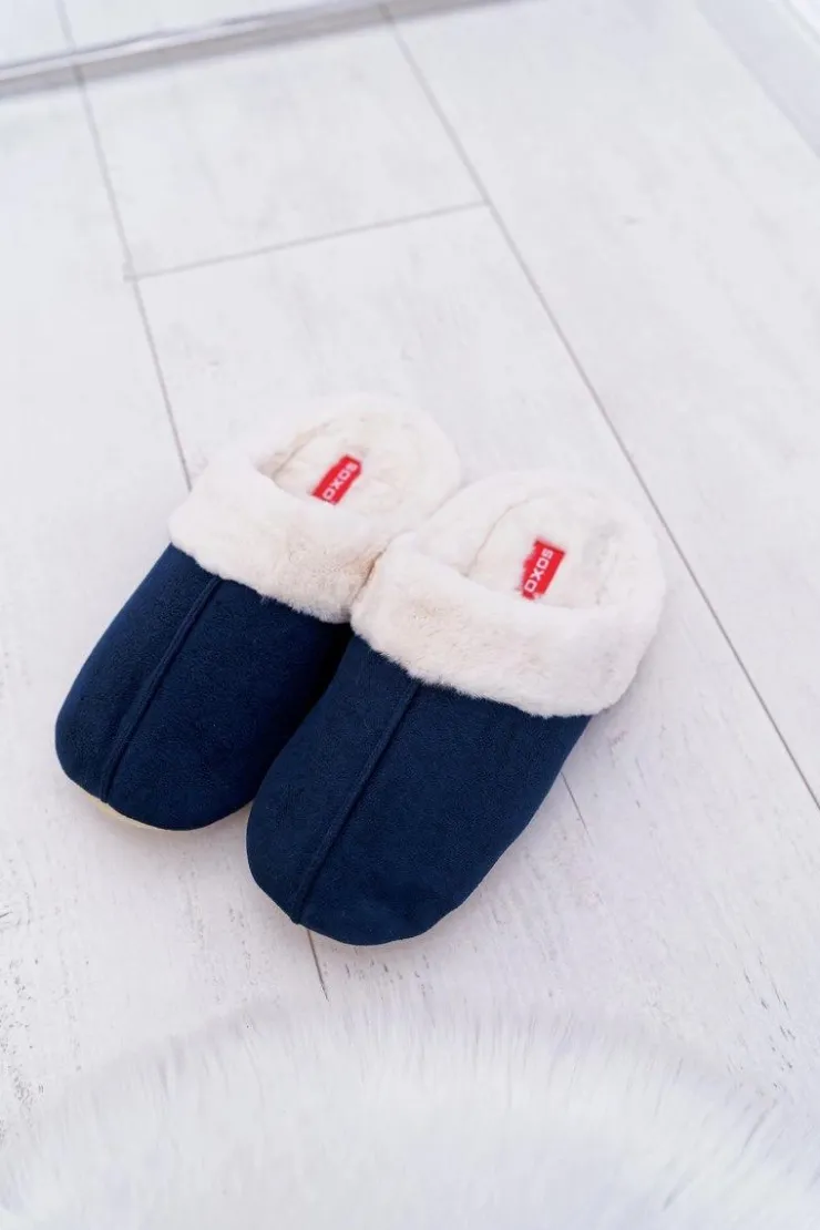 Damskie Boto Papcie Męskie SOXO Klapki Z Futerkiem Granatowe 70103