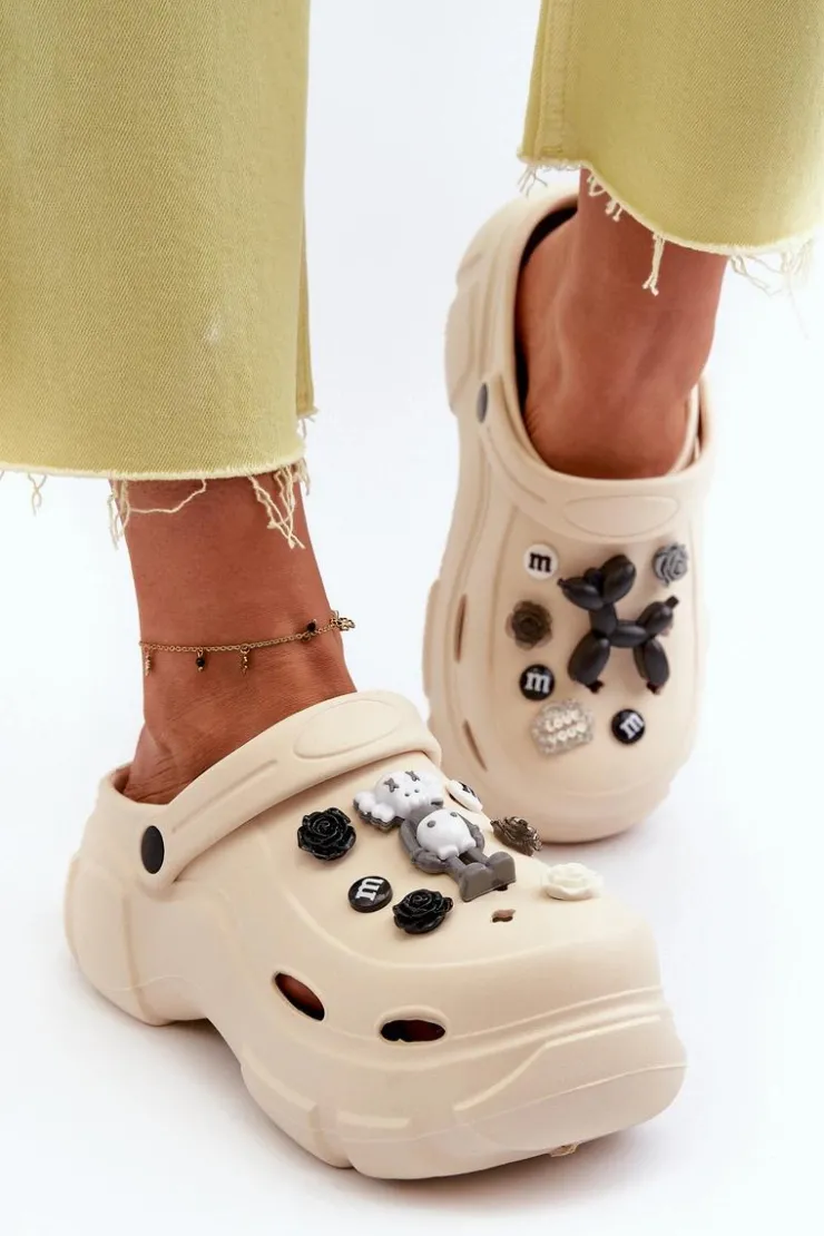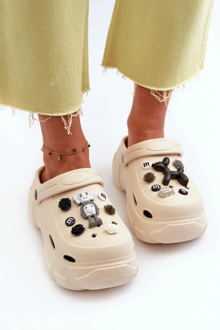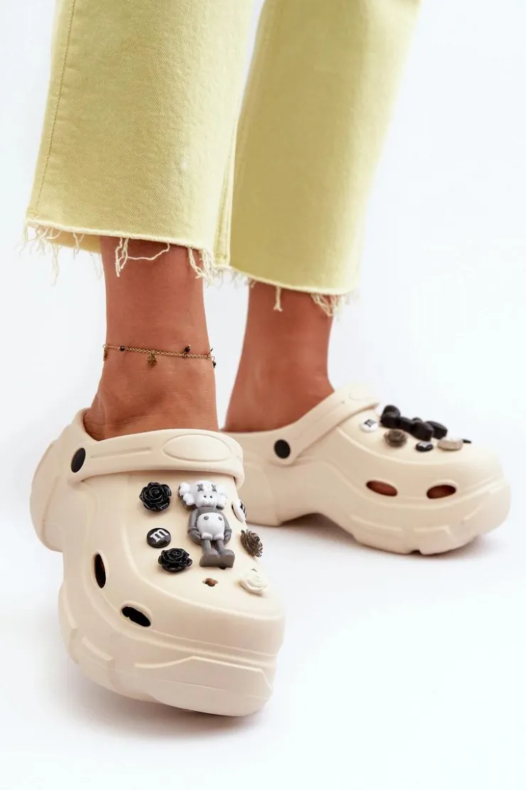 Modne lekkie klapki na masywnej platformie to idealny wybór na letnie dni. Wykonane z pianki, co zapewnia lekkość i wygodę podczas noszenia. Dodatkowo masywna platforma nadaje im modny wygląd, który świetnie komponuje się z letnimi stylizacjami. Doskonałe na spacery czy wypad nad morze. Dodatkowo model ten posiada zestaw przypinek! Przy wyborze rozmiaru prosimy sugerować się tabelą rozmiarów.