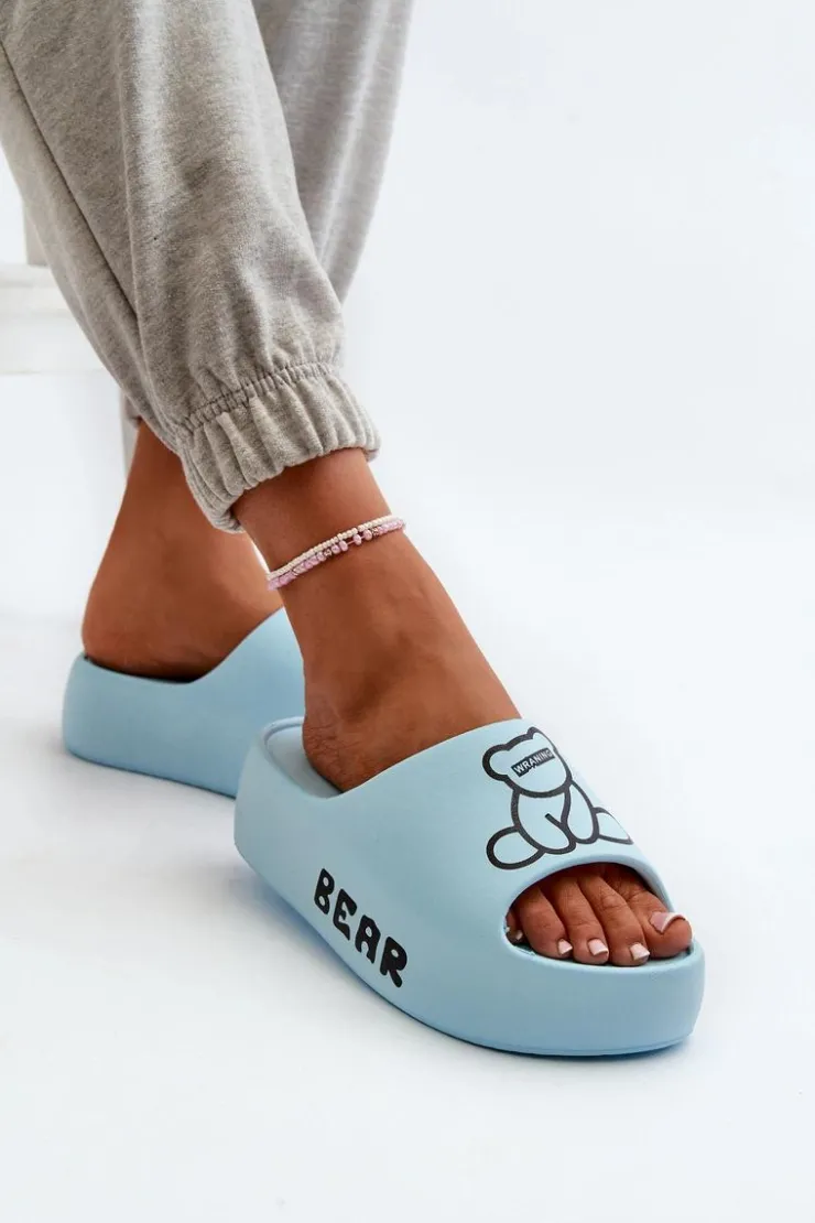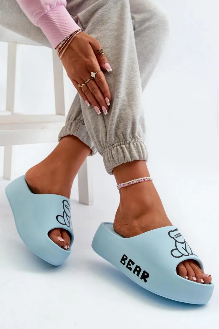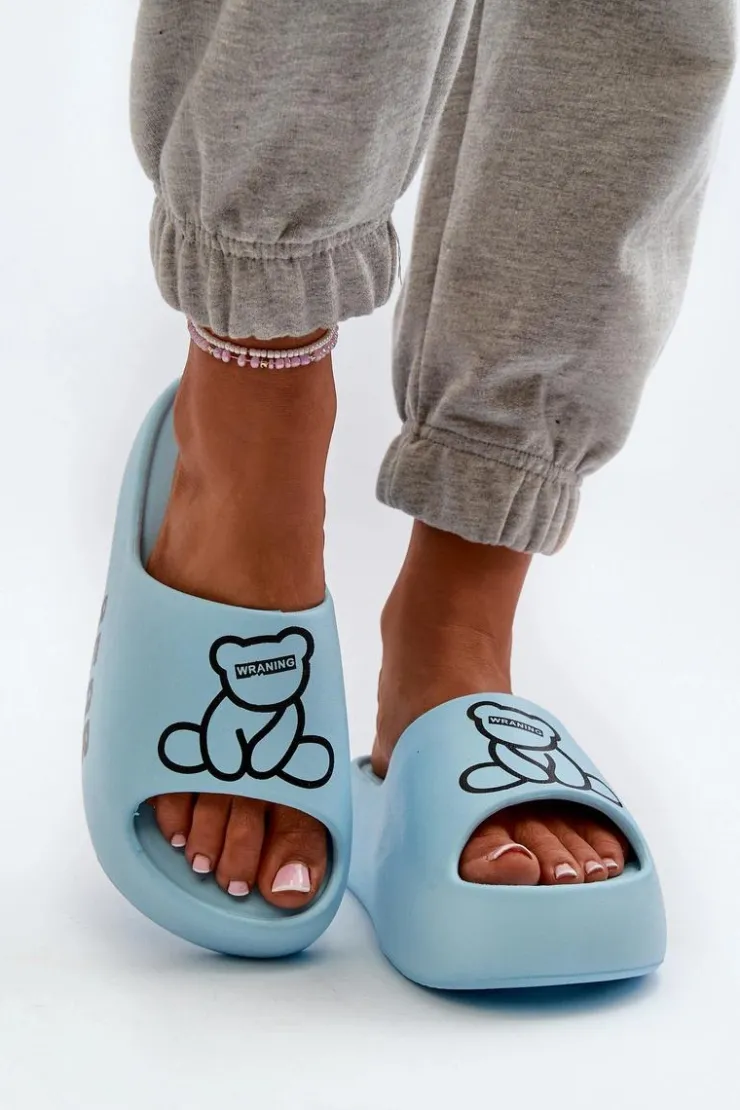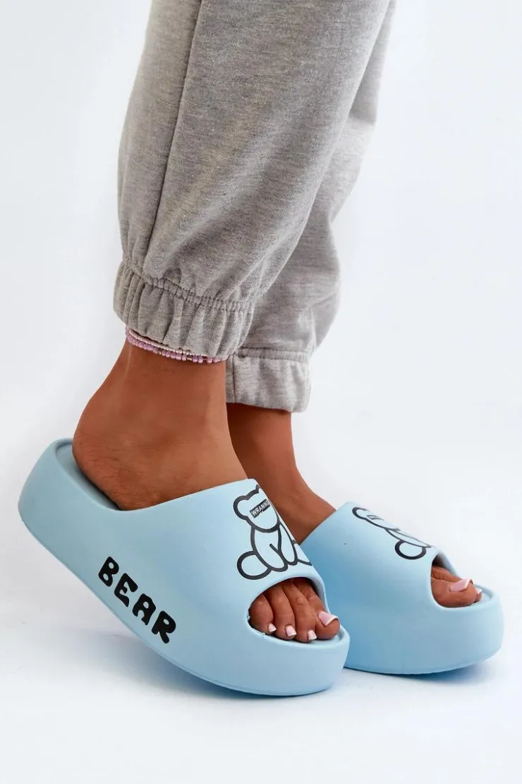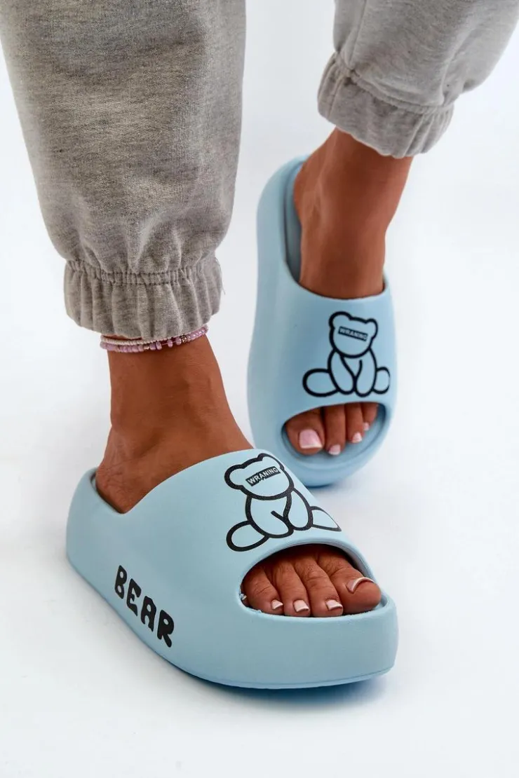 Lekkie damskie klapki na basen wykonane z piankowego tworzywa. Osadzone na masywnej podeszwie. Te urocze klapki zdobi nadruk z motywem misia, który dodaje im wyjątkowego charakteru. Idealne do codziennego użytku na, łączą wygodę i styl w jednym. Przy wyborze rozmiaru prosimy sugerować się tabelą rozmiarów.
