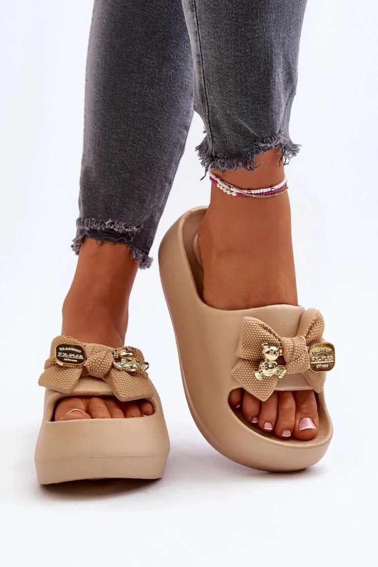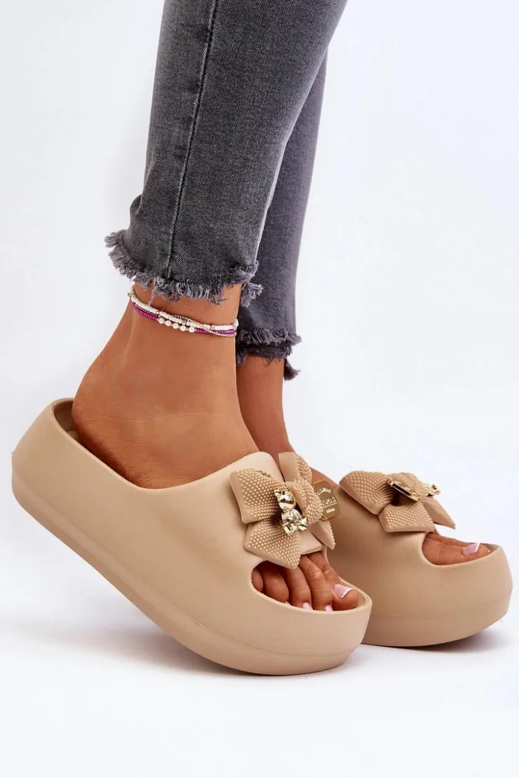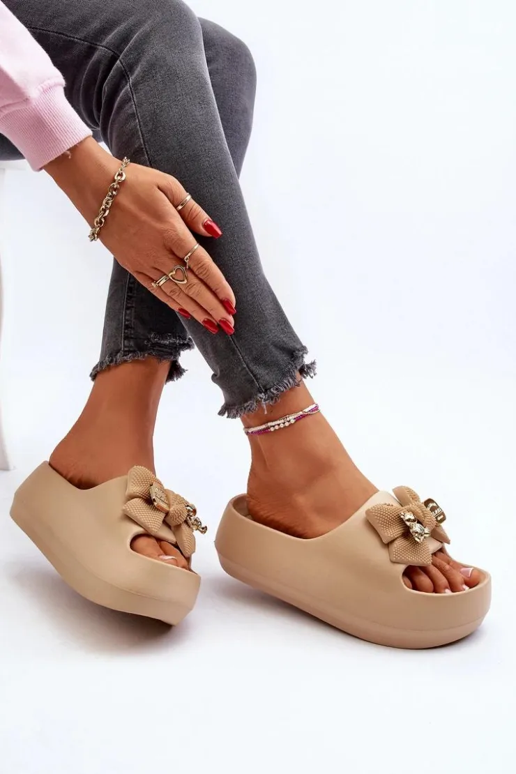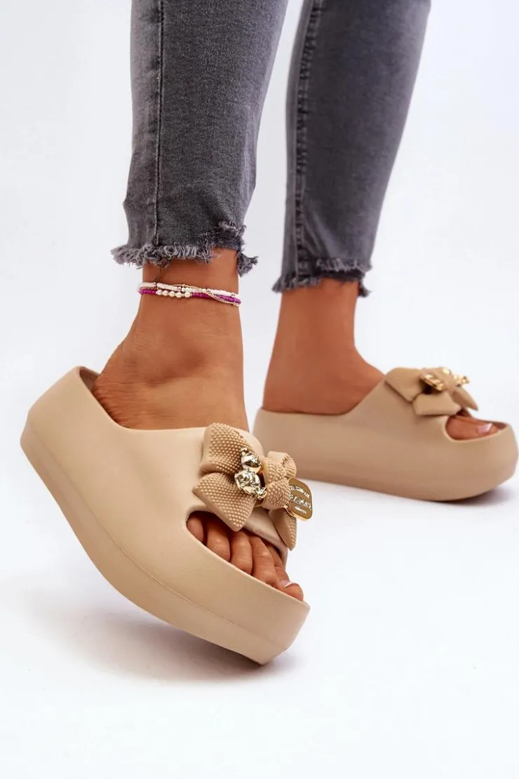 Te lekkie klapki damskie są doskonałym wyborem na ciepłe dni. Wykonane z piankowego tworzywa, zapewniają wygodę i komfort podczas noszenia. Masywna podeszwa gwarantuje stabilność, a ozdobna kokarda z imitacją agrafki dodaje im uroku i oryginalności. Koniecznie musisz je mieć! Przy wyborze rozmiaru prosimy sugerować się tabelą rozmiarów.
