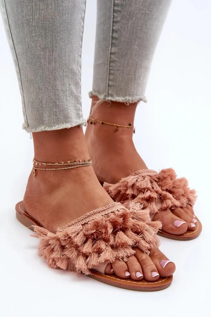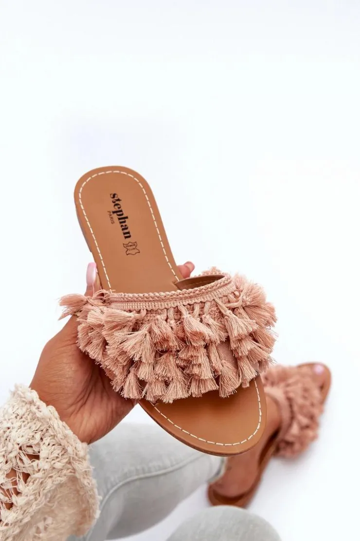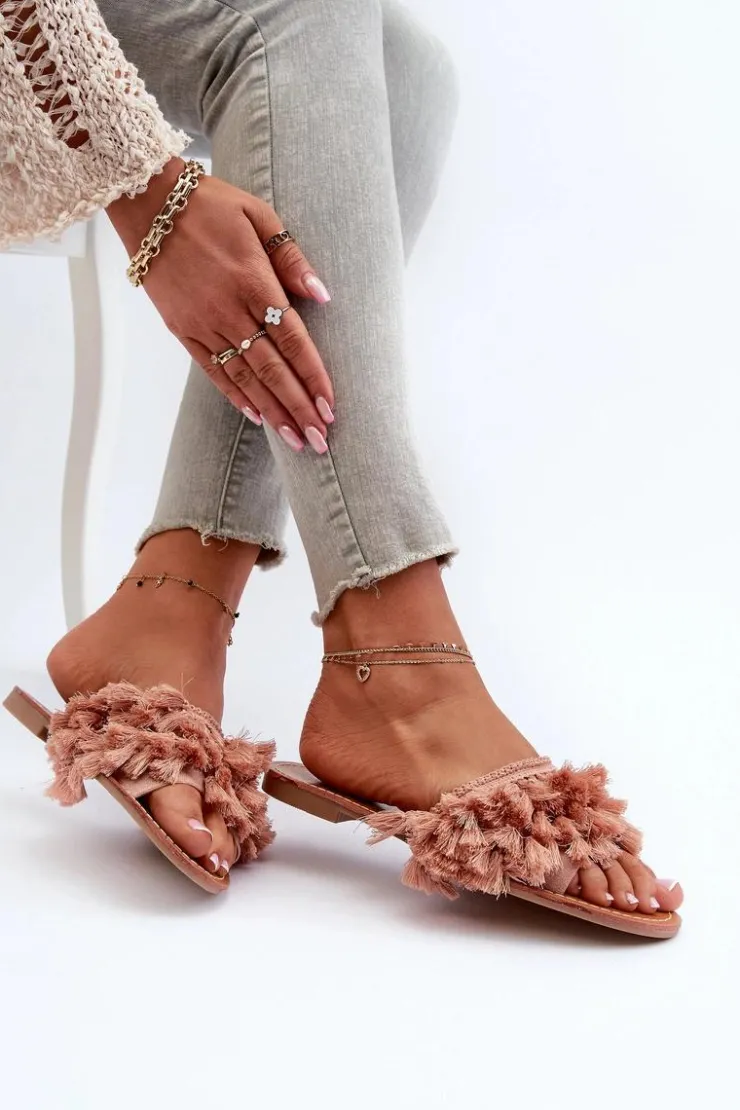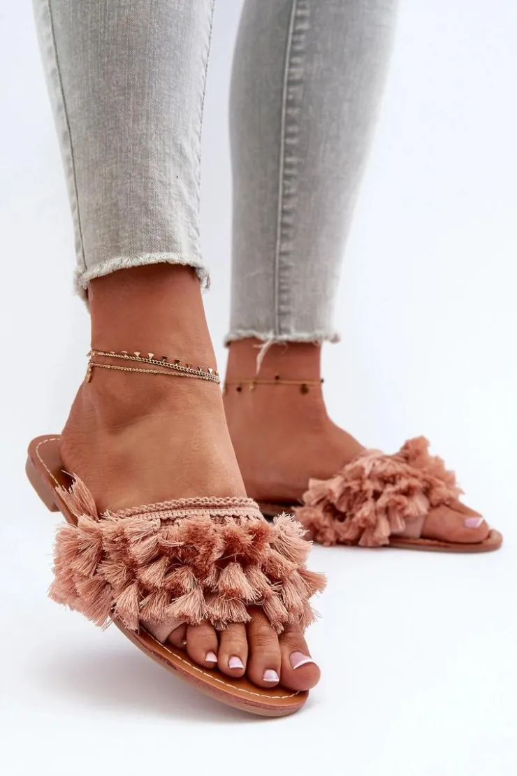 Klapki na płaskim obcasie z frędzlami to doskonały wybór dla kobiet, które szukają stylowego i wygodnego obuwia na letnie dni. Frędzle dodają im oryginalności, a płaski obcas gwarantuje komfort noszenia przez cały dzień. Te klapki będą doskonałym uzupełnieniem letnich stylizacji! Przy wyborze rozmiaru prosimy sugerować się tabelą rozmiarów.
